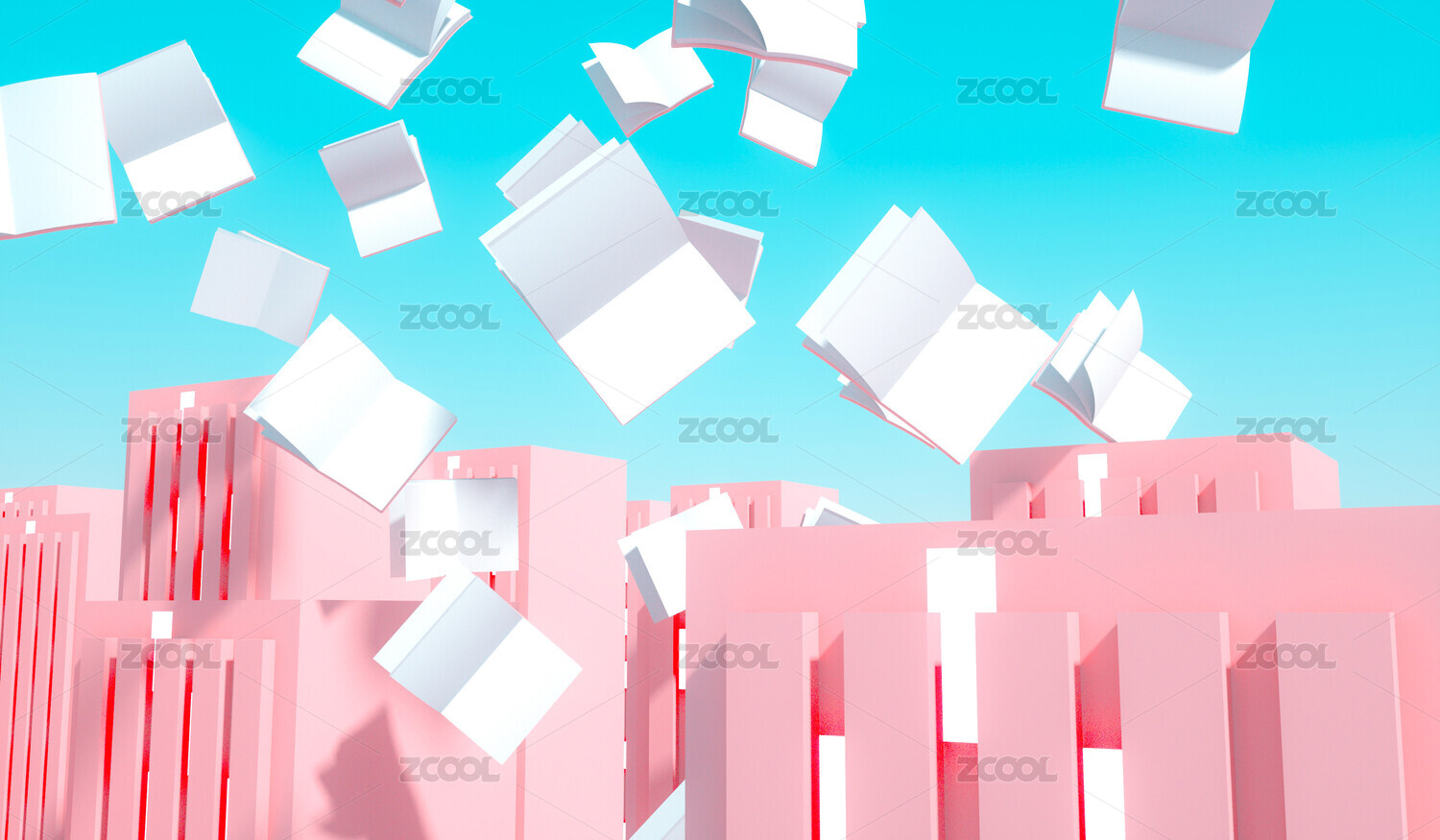 由一群小清新彩色书组成的阅读主题海报
