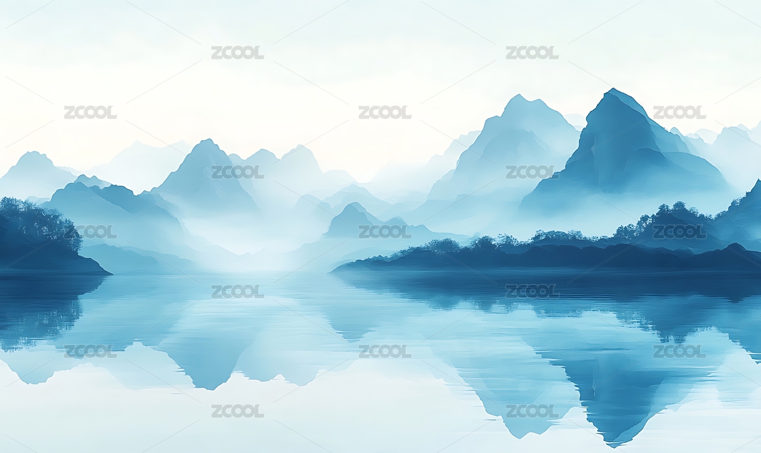 山脉,山峰,雾,朦胧,意境,水墨画,中国画,山水画,青色,蓝色