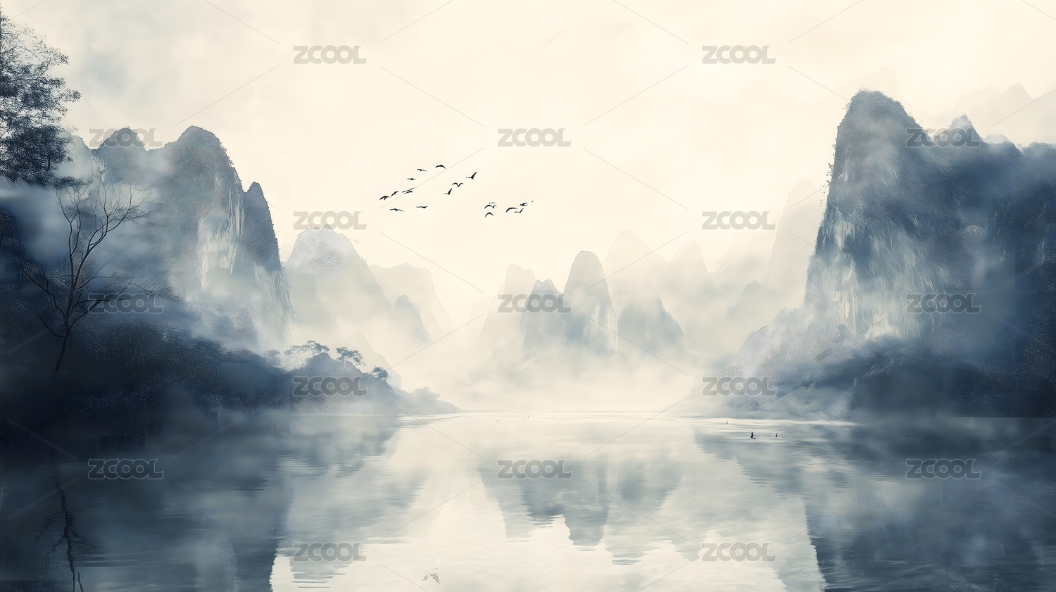 传统中国山水画新国风古风背景壁纸