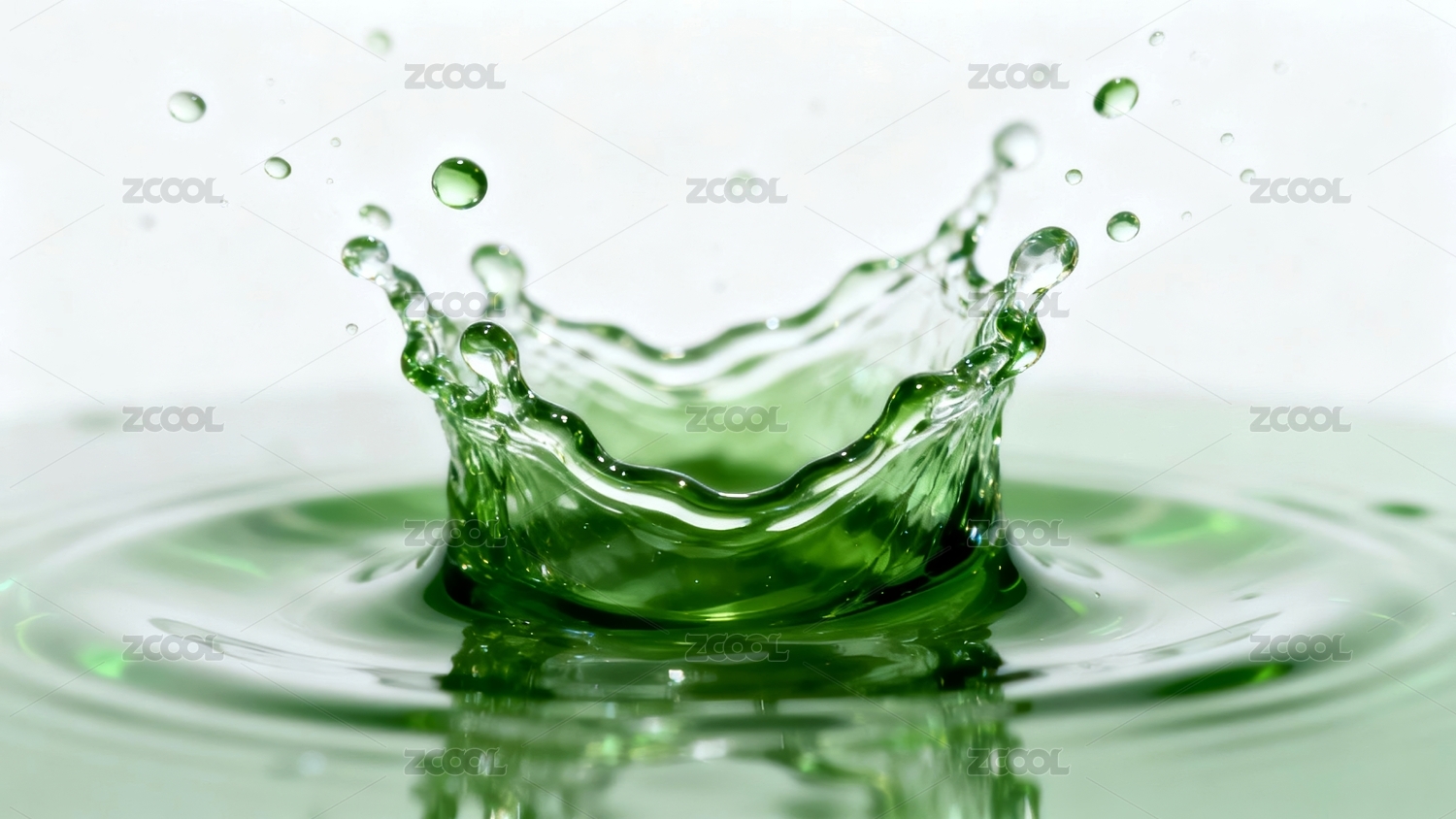 绿色液体与飞溅水滴