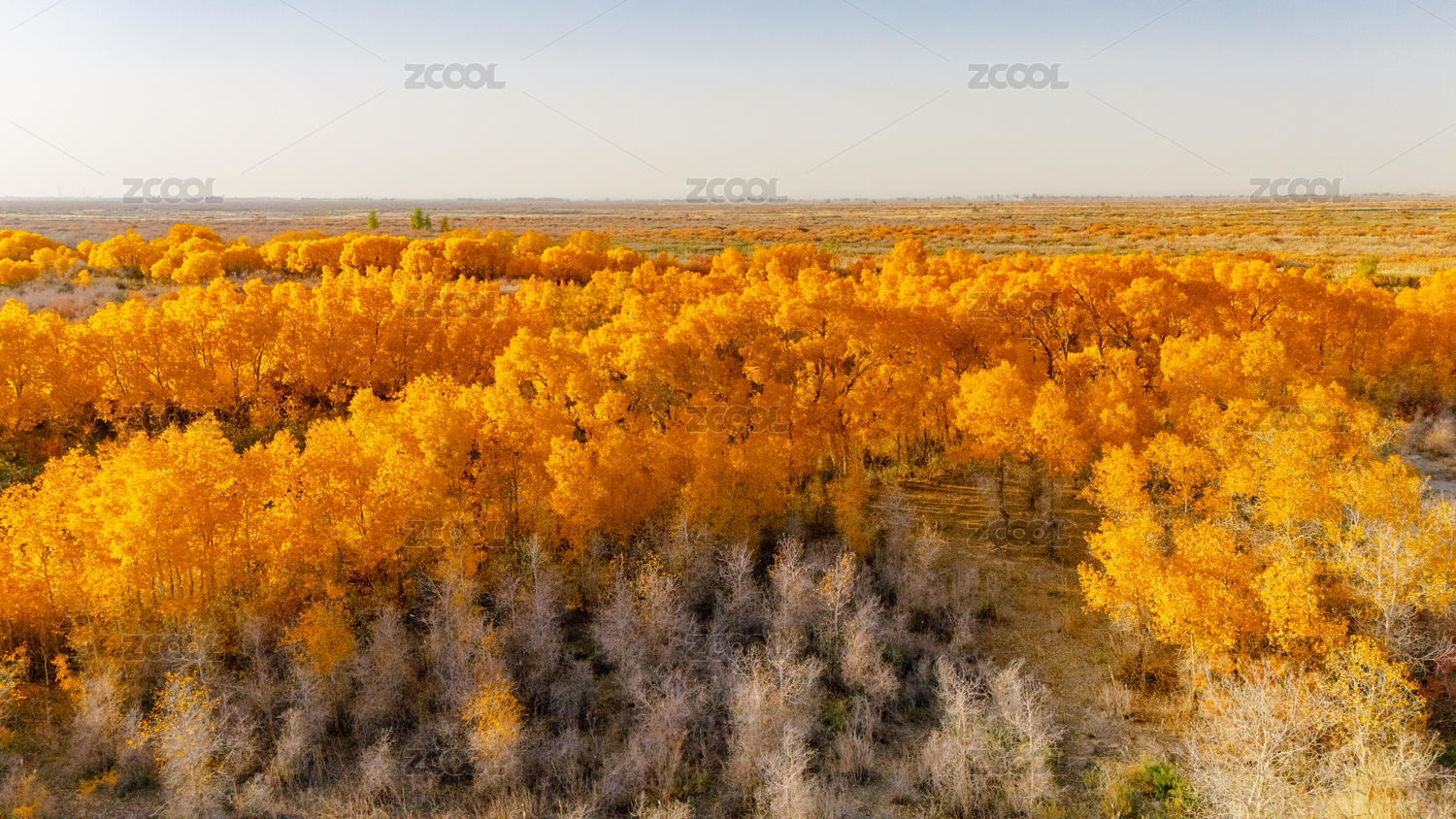 航拍中国西北秋天金色胡杨林
