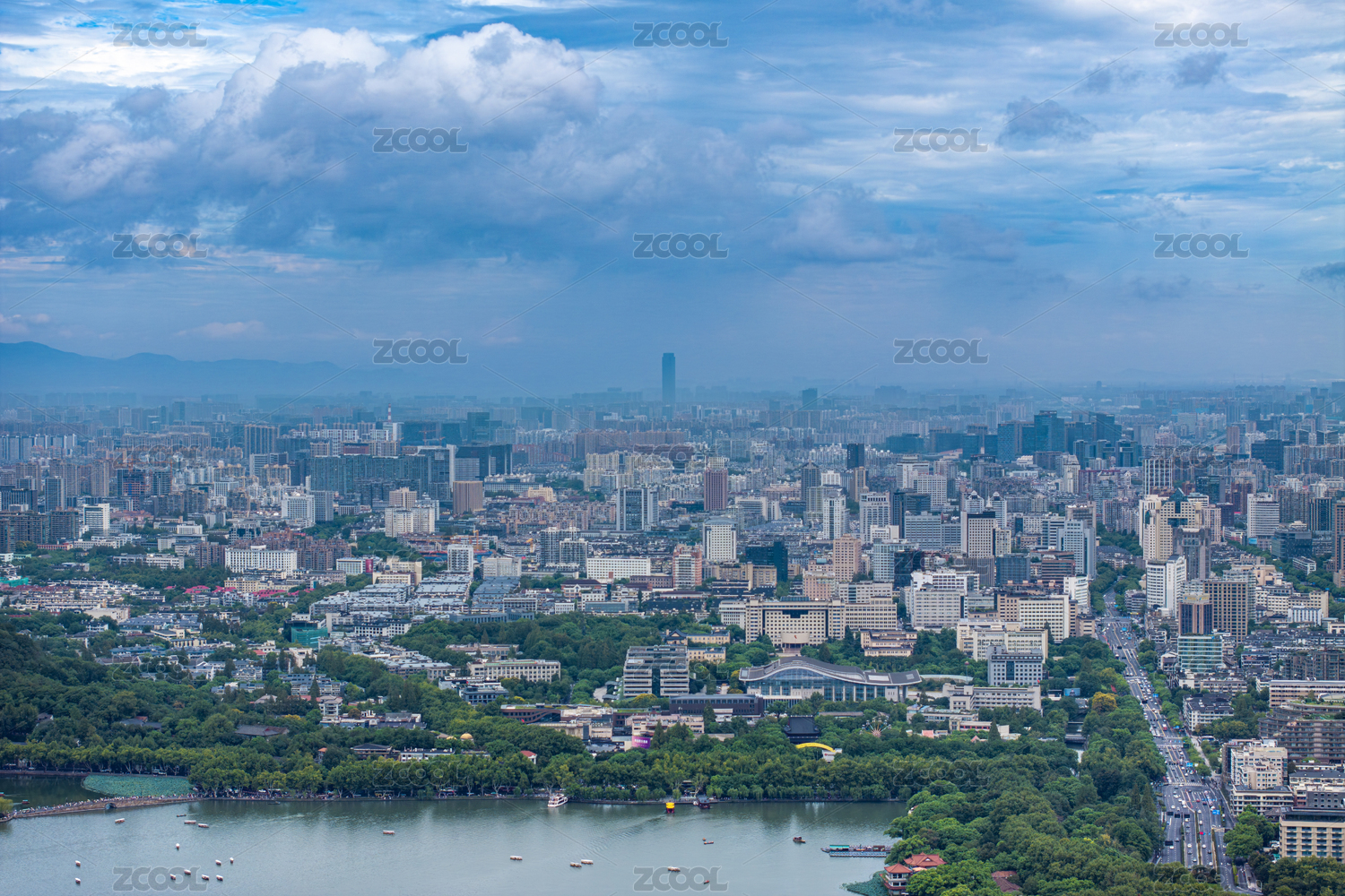 航拍杭州西湖与城市