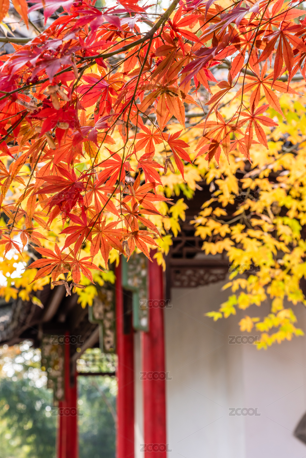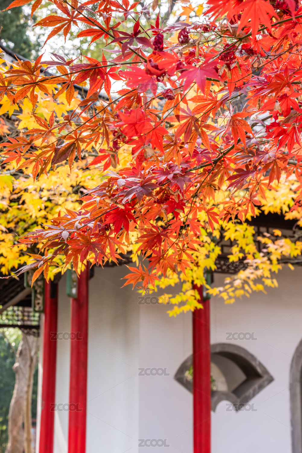 江苏省无锡市锡惠公园里秋天的枫树红叶