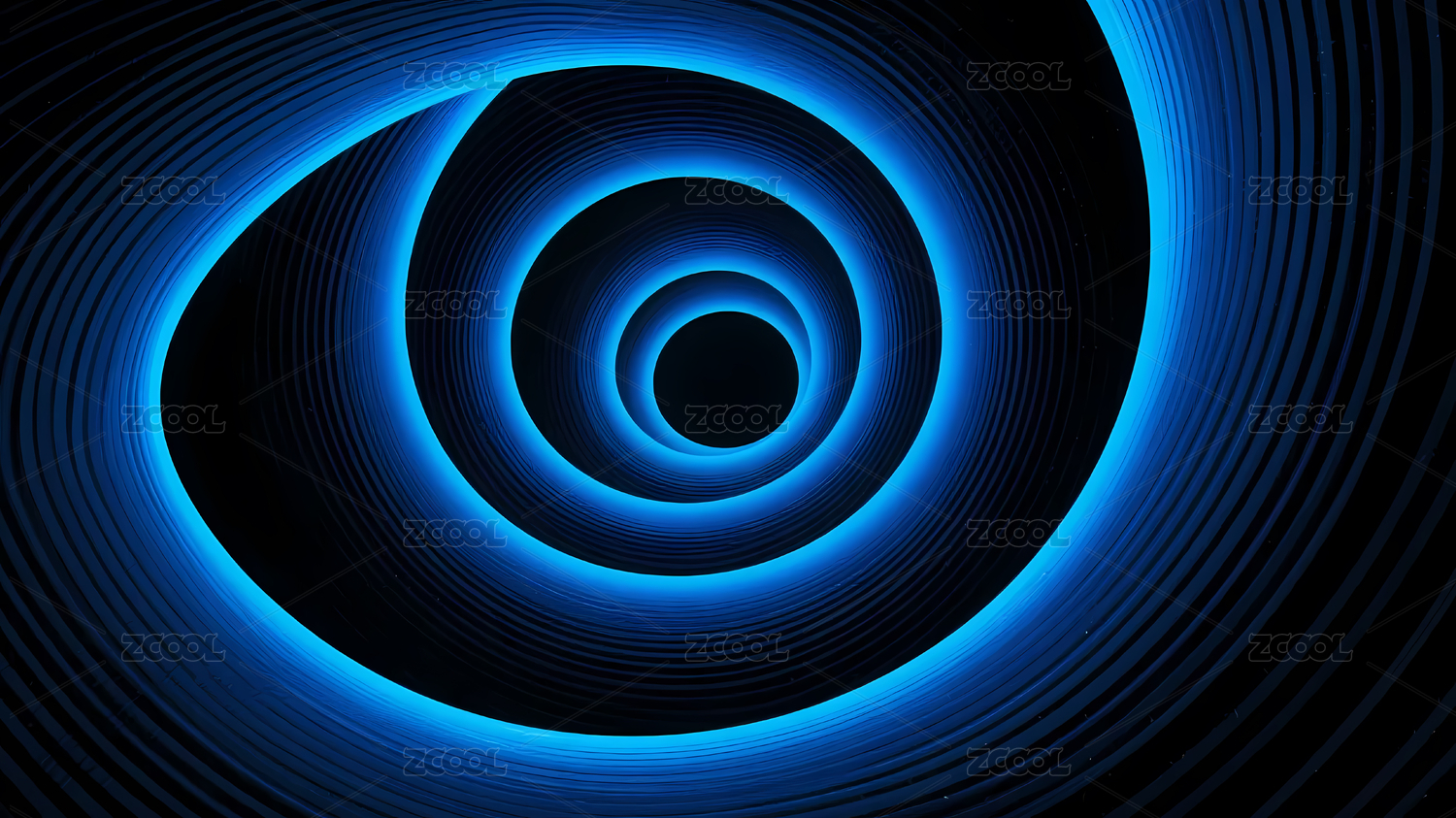 蓝色螺旋图案与黑洞结构