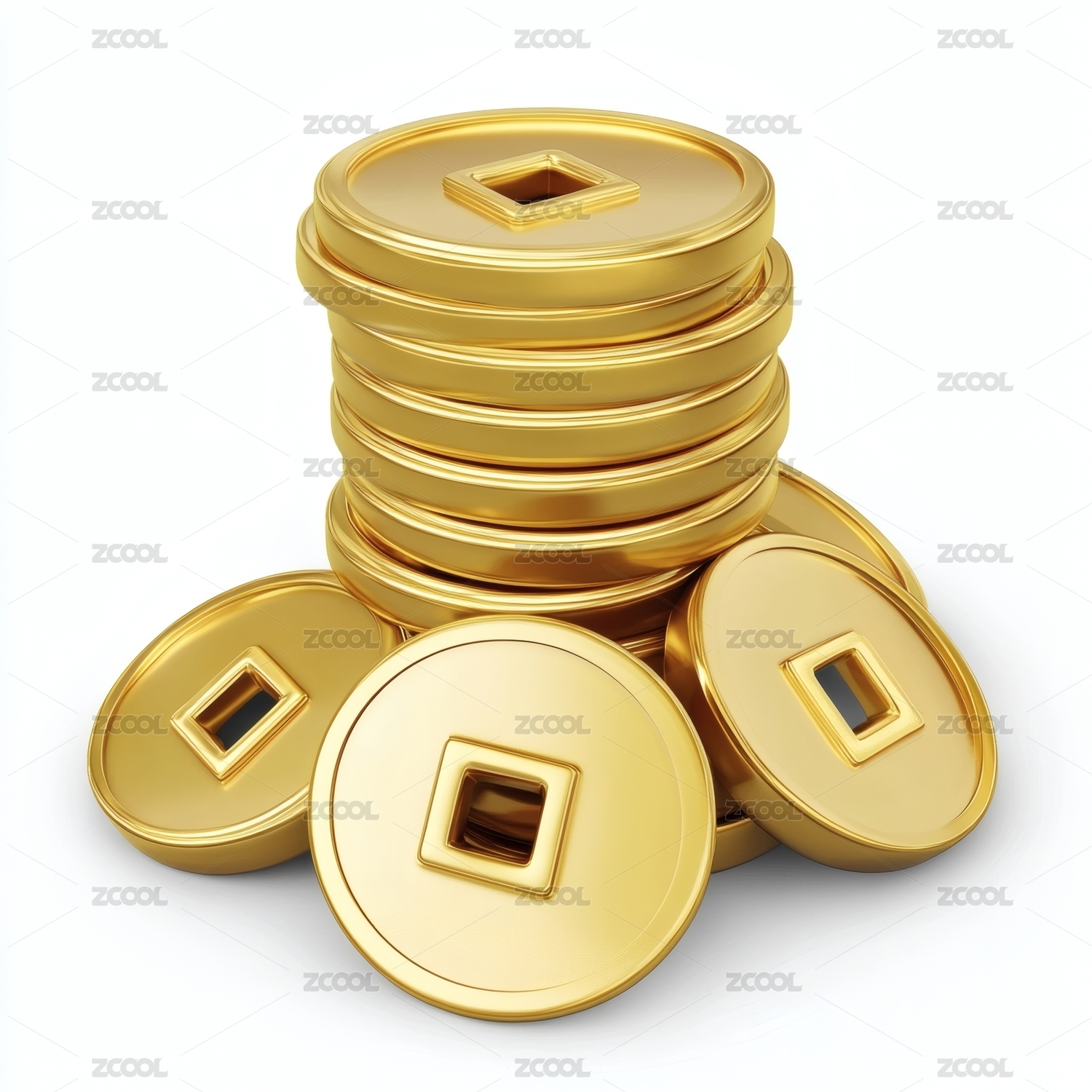 堆叠的金色方形孔古钱币