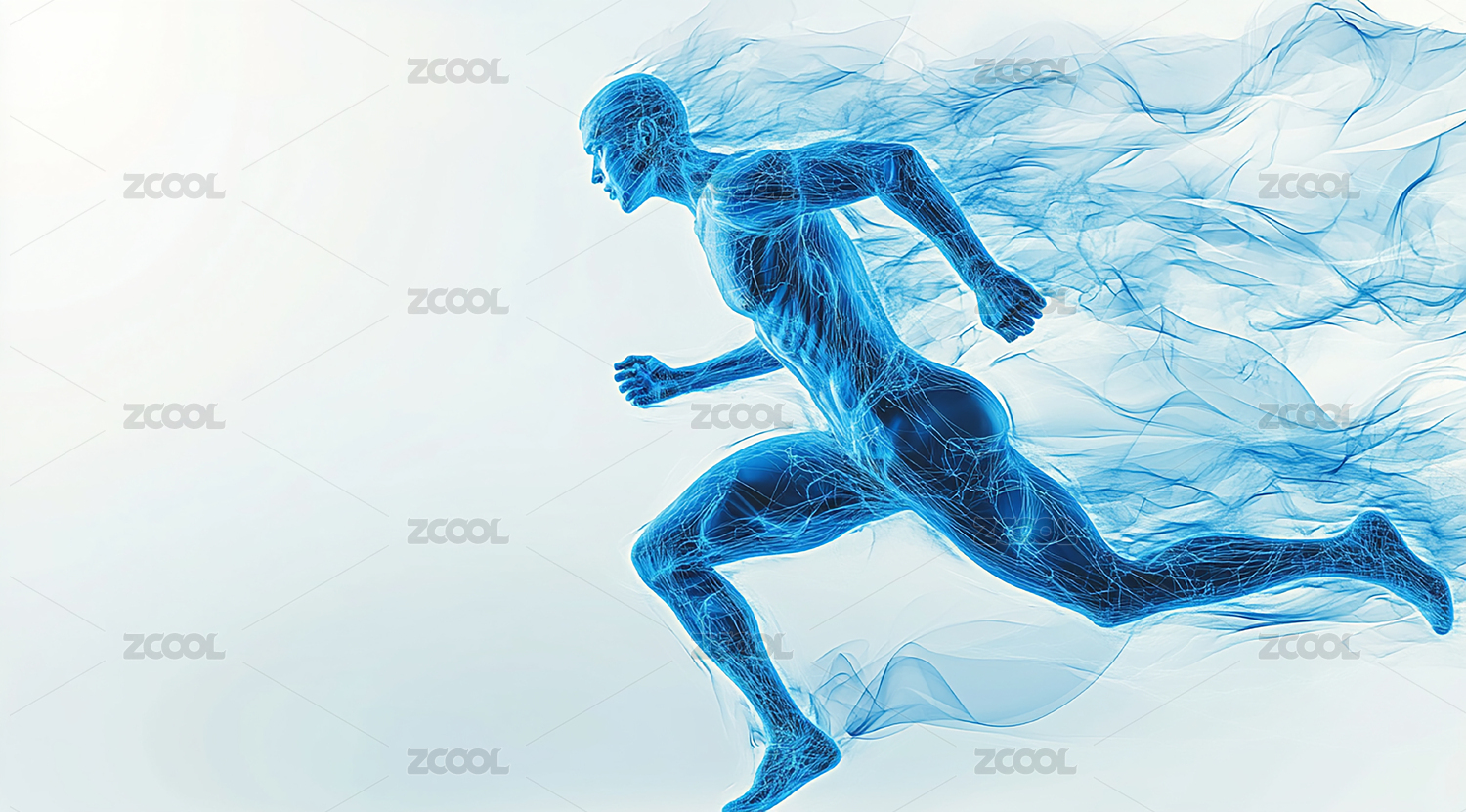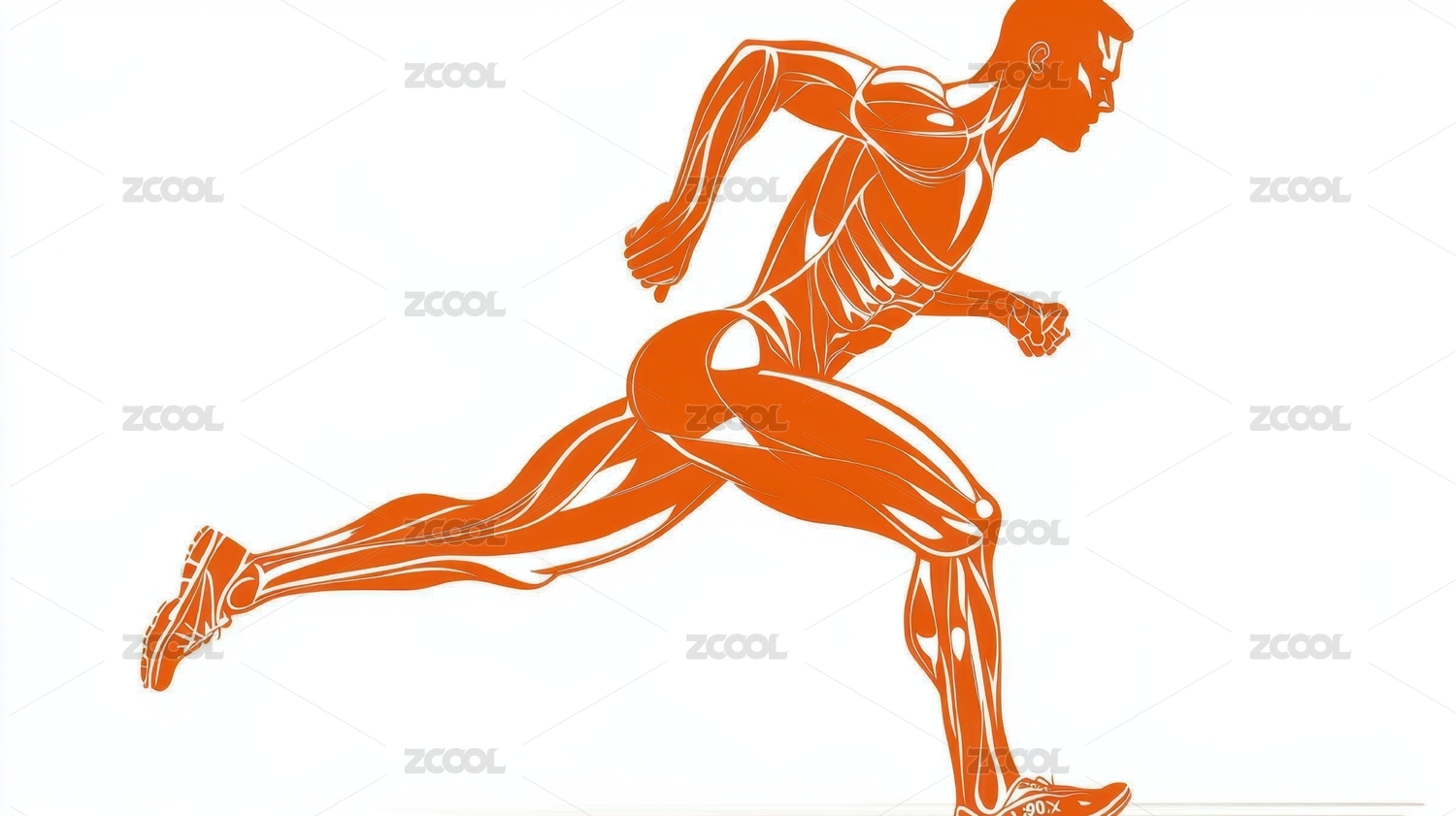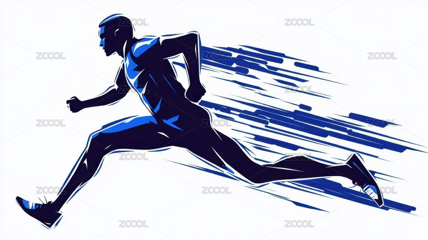 运动健将奔跑剪影,红蓝色彩背景,充满动感