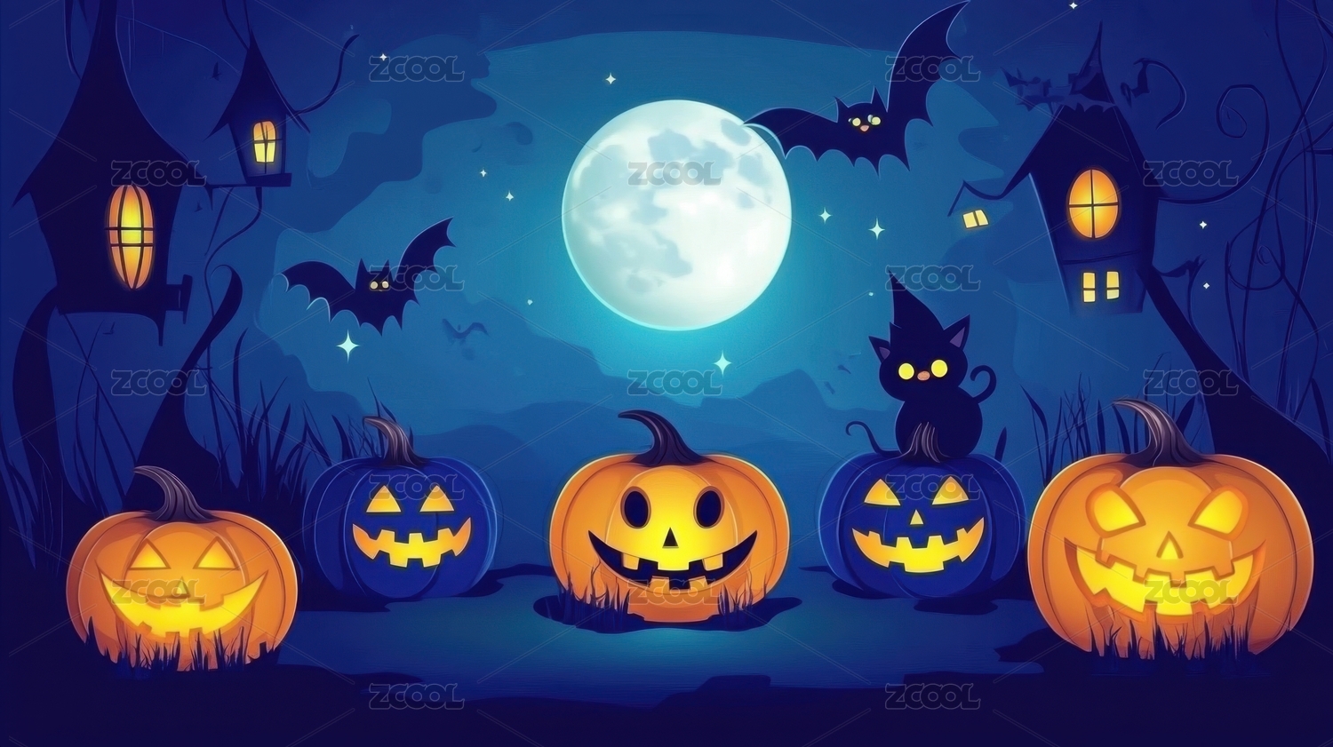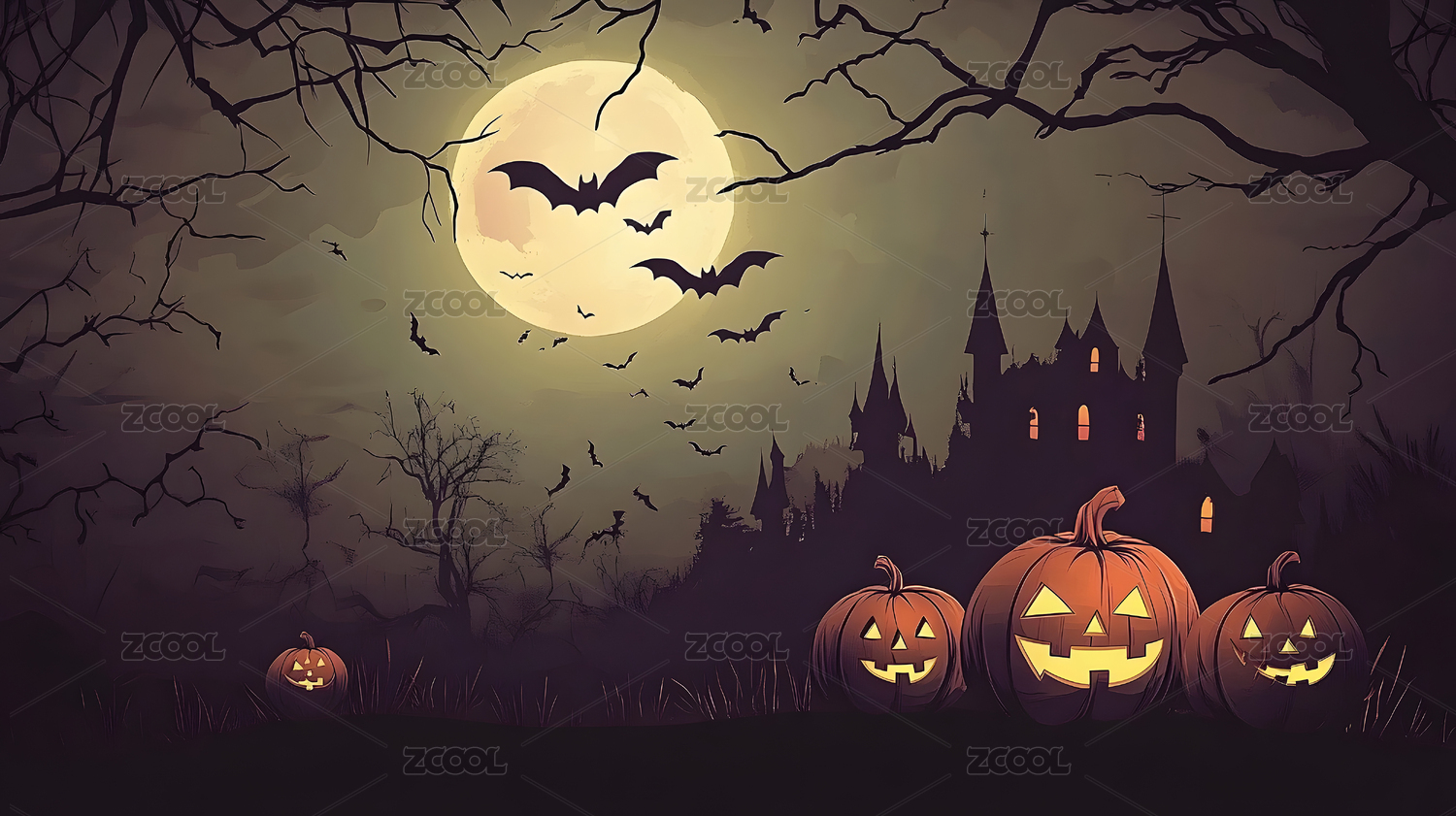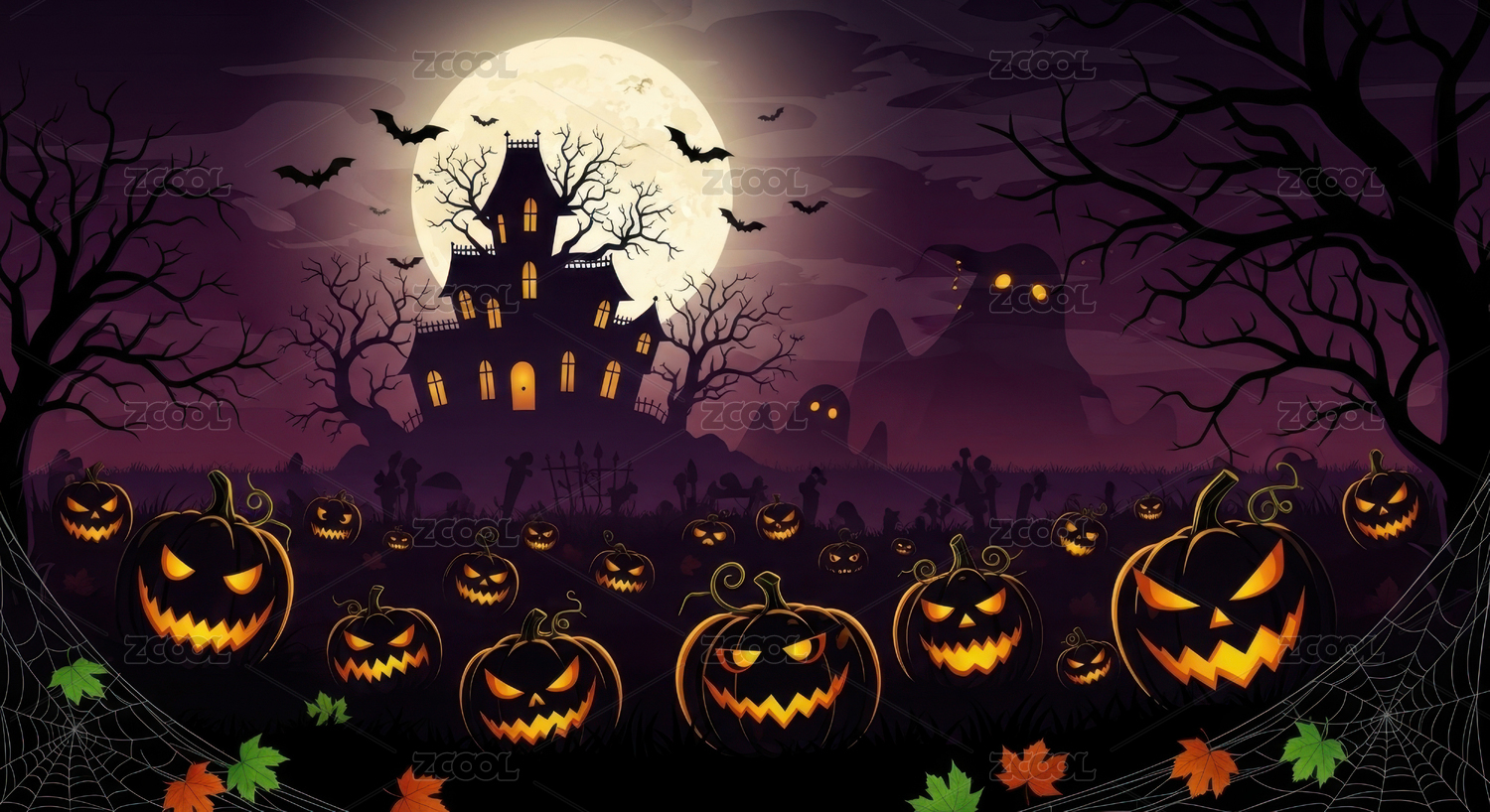 万圣节,鬼节,扫把,城堡,坟墓,墓地,蝙蝠,蜘蛛,黑夜,鬼怪