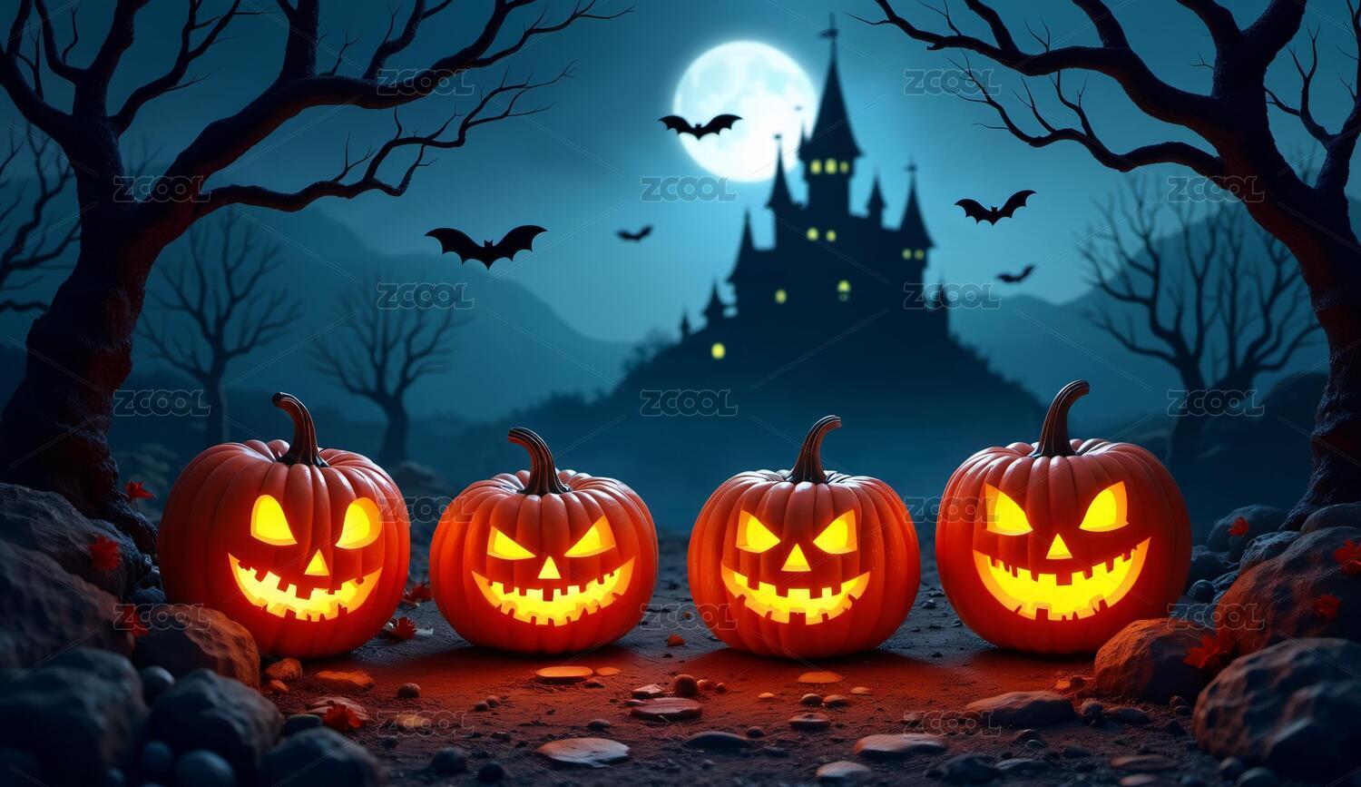 万圣节,鬼节,扫把,城堡,坟墓,墓地,蝙蝠,蜘蛛,黑夜,鬼怪