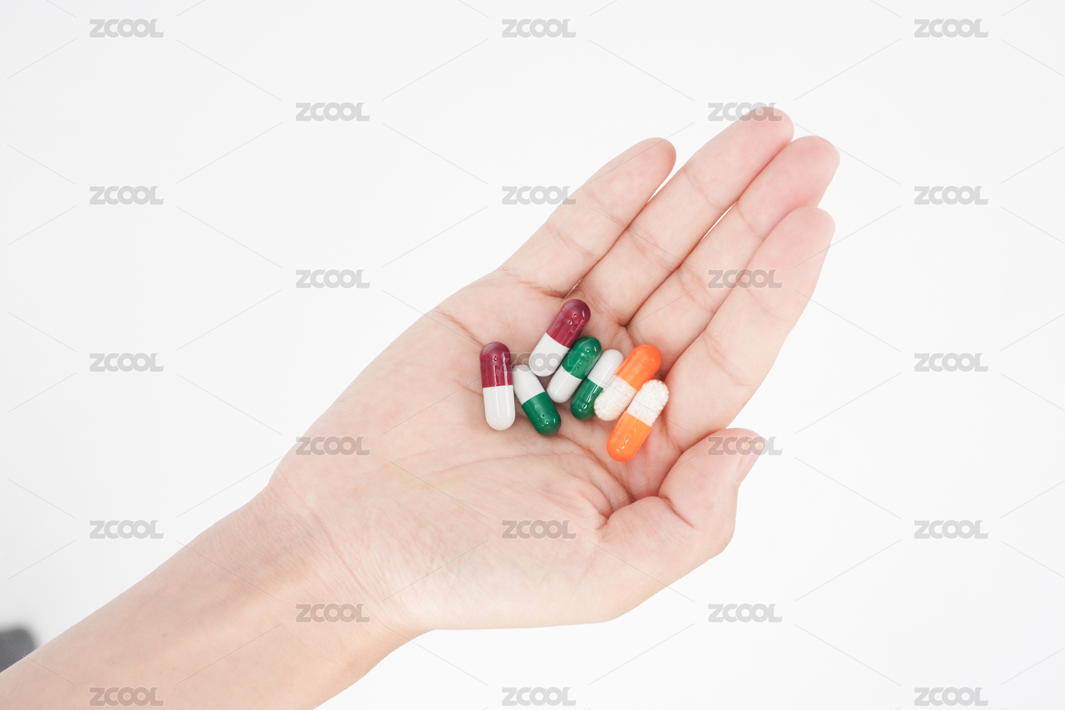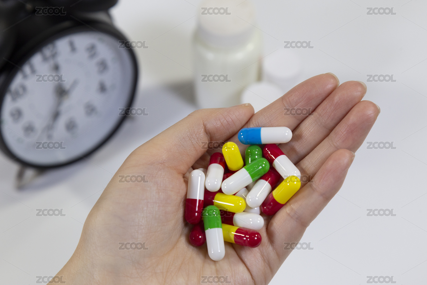在蓝色背景上用于医疗治疗用中西药药丸胶囊