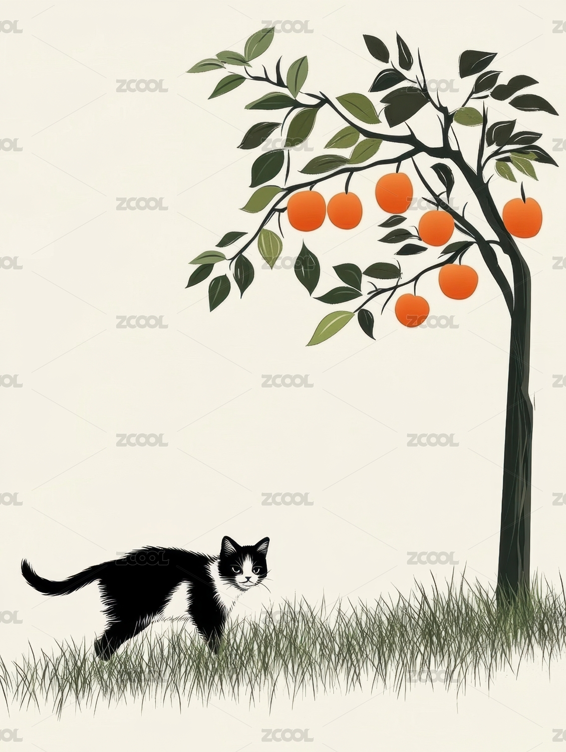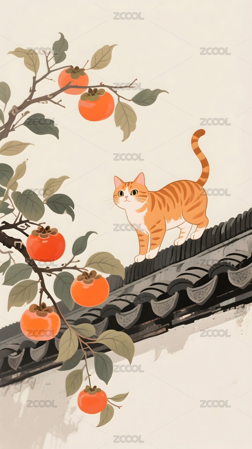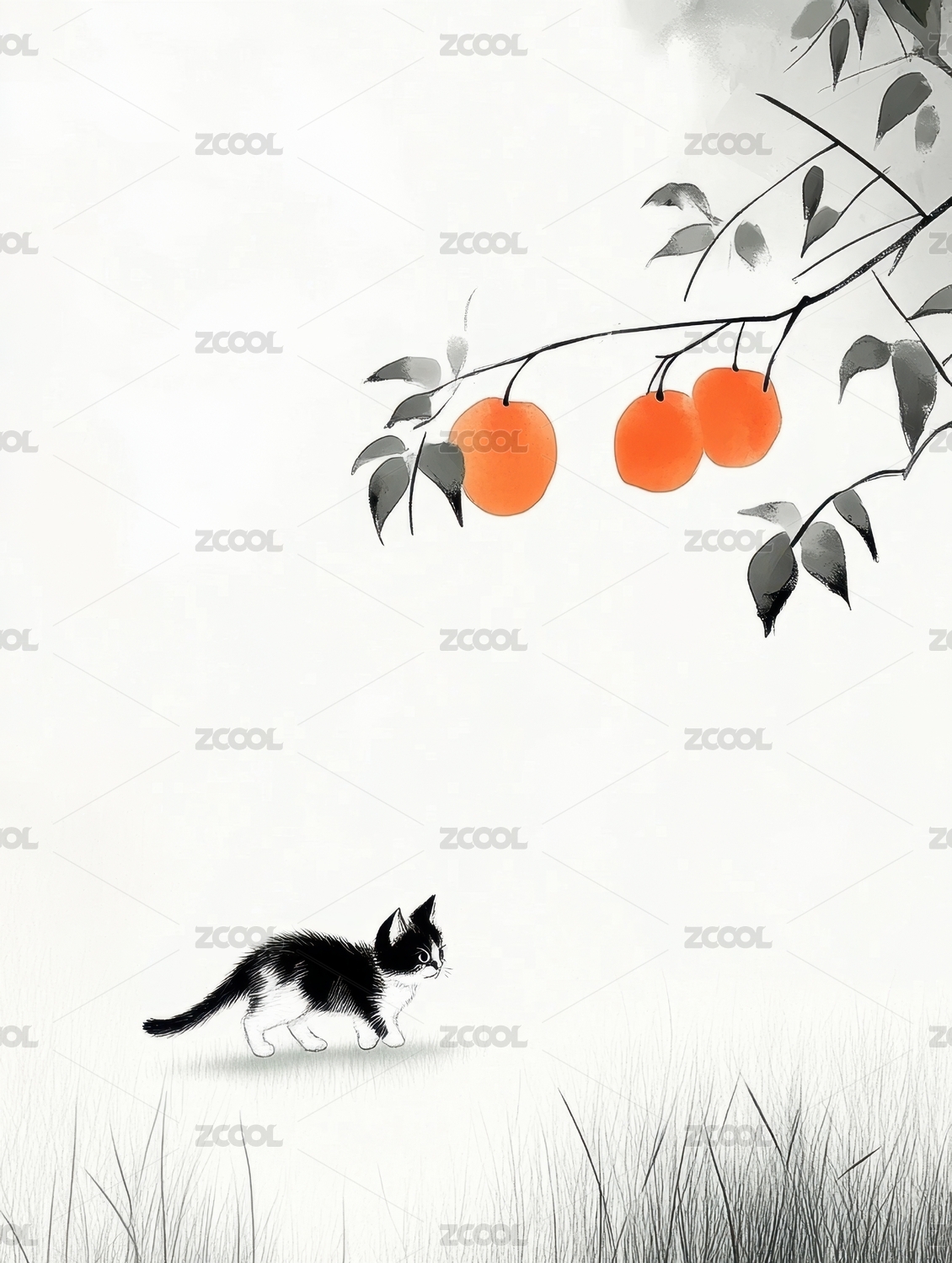 可爱,清新,淡雅,猫咪,中国风,动物,艺术,手绘,绘画,毛茸茸