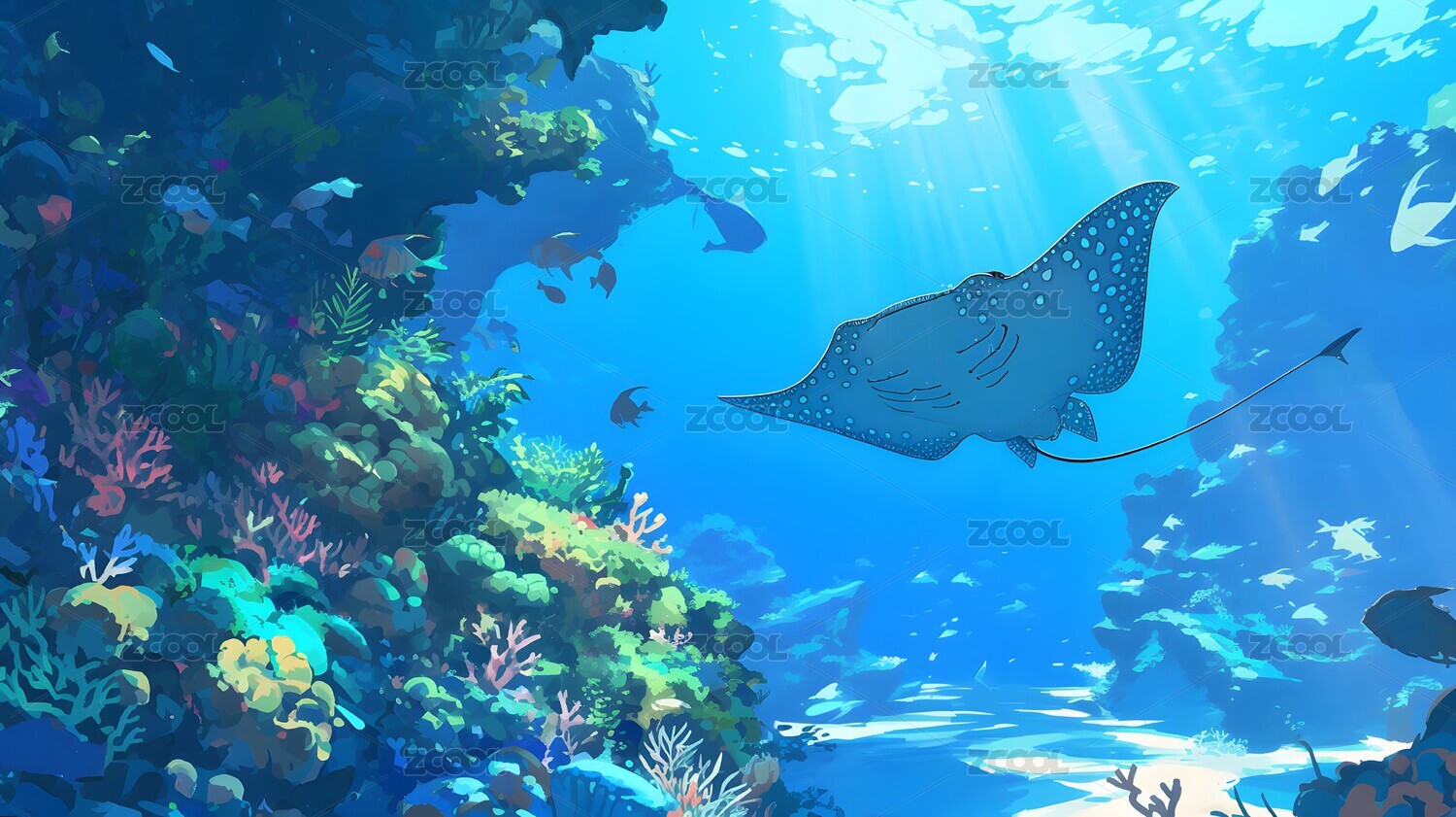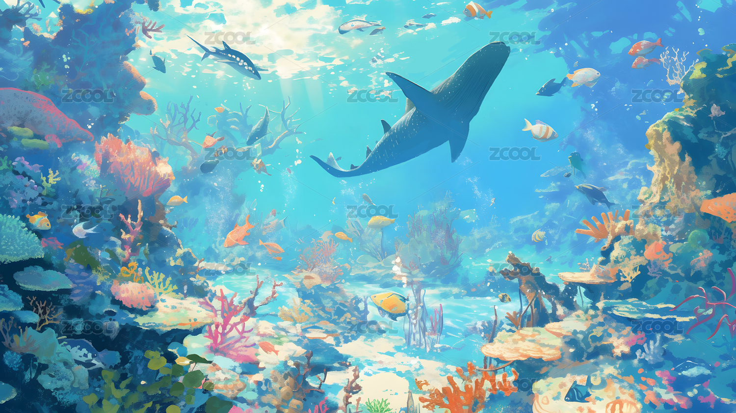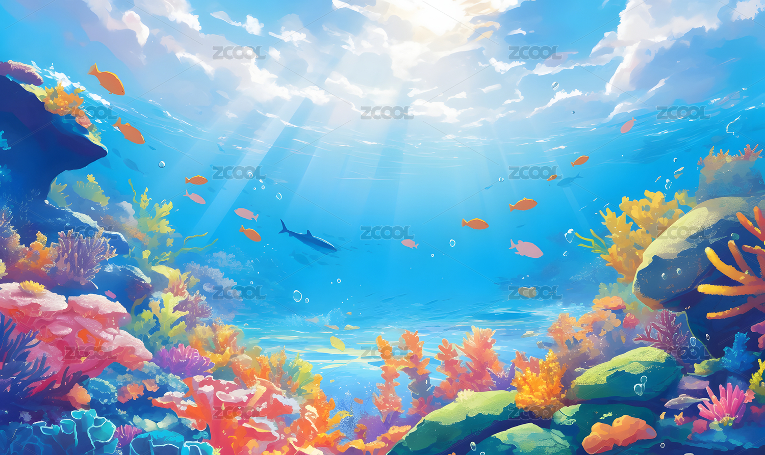 白天阳光海底世界唯美插画