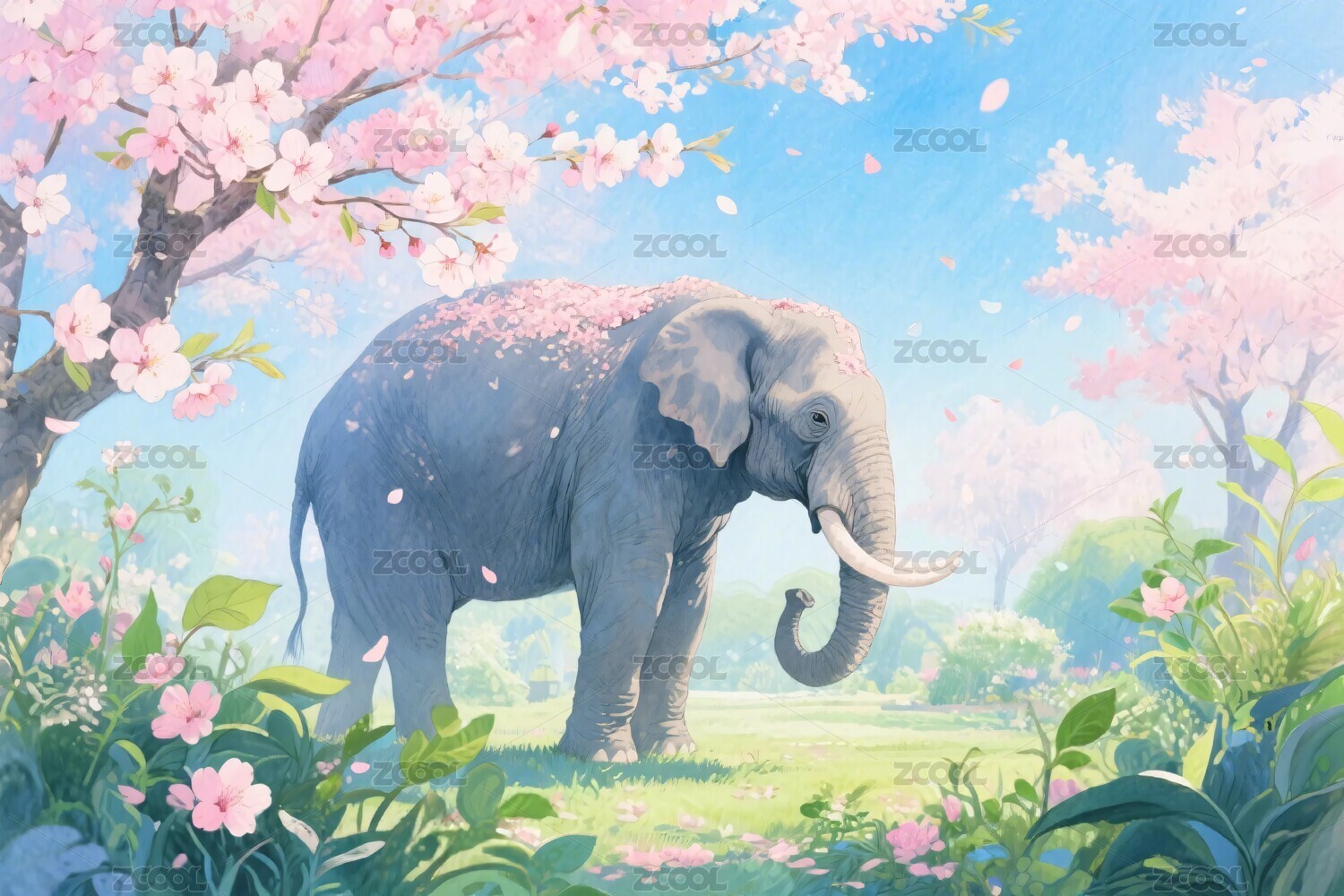 春日大象插画场景