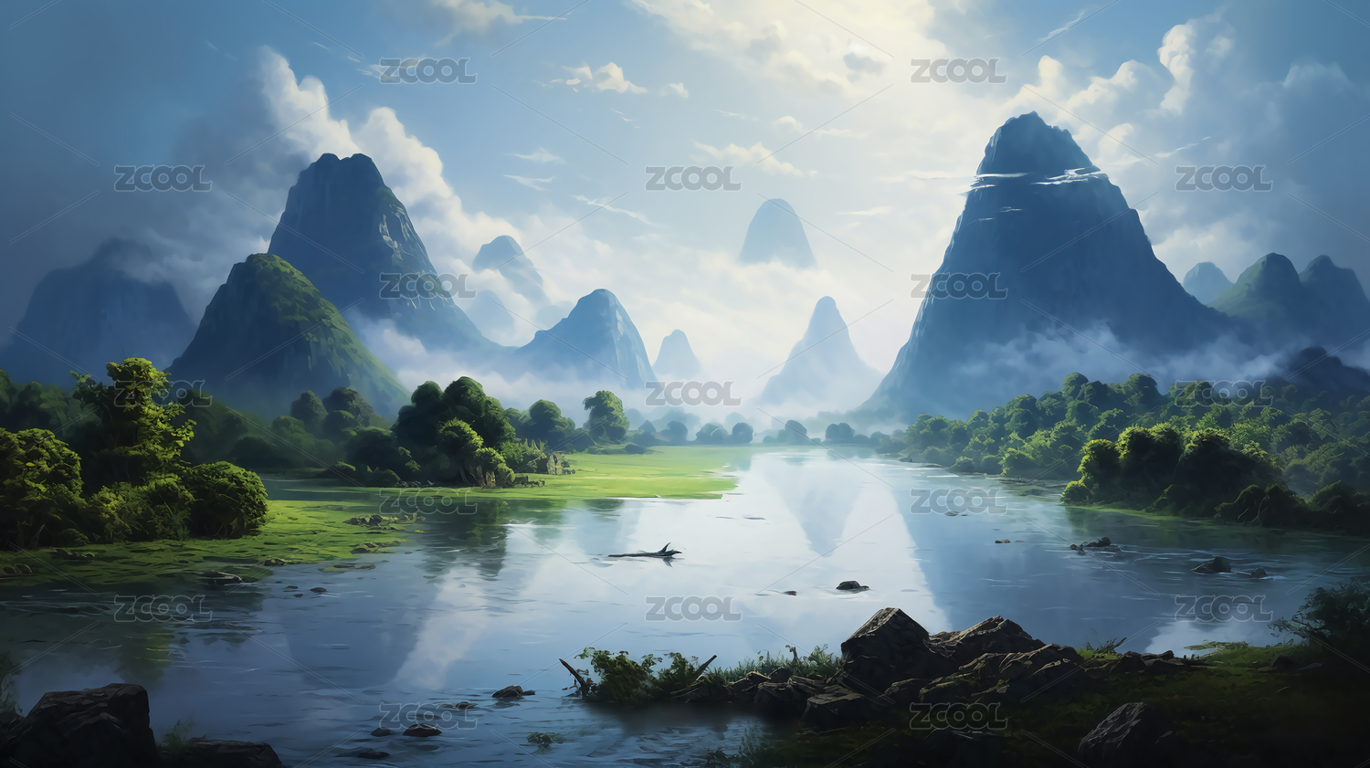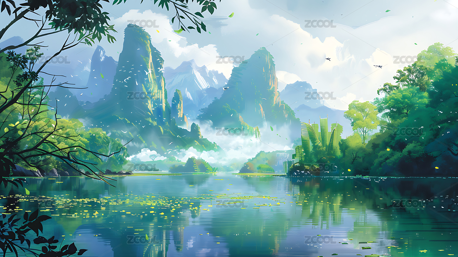 中式国风山水插画