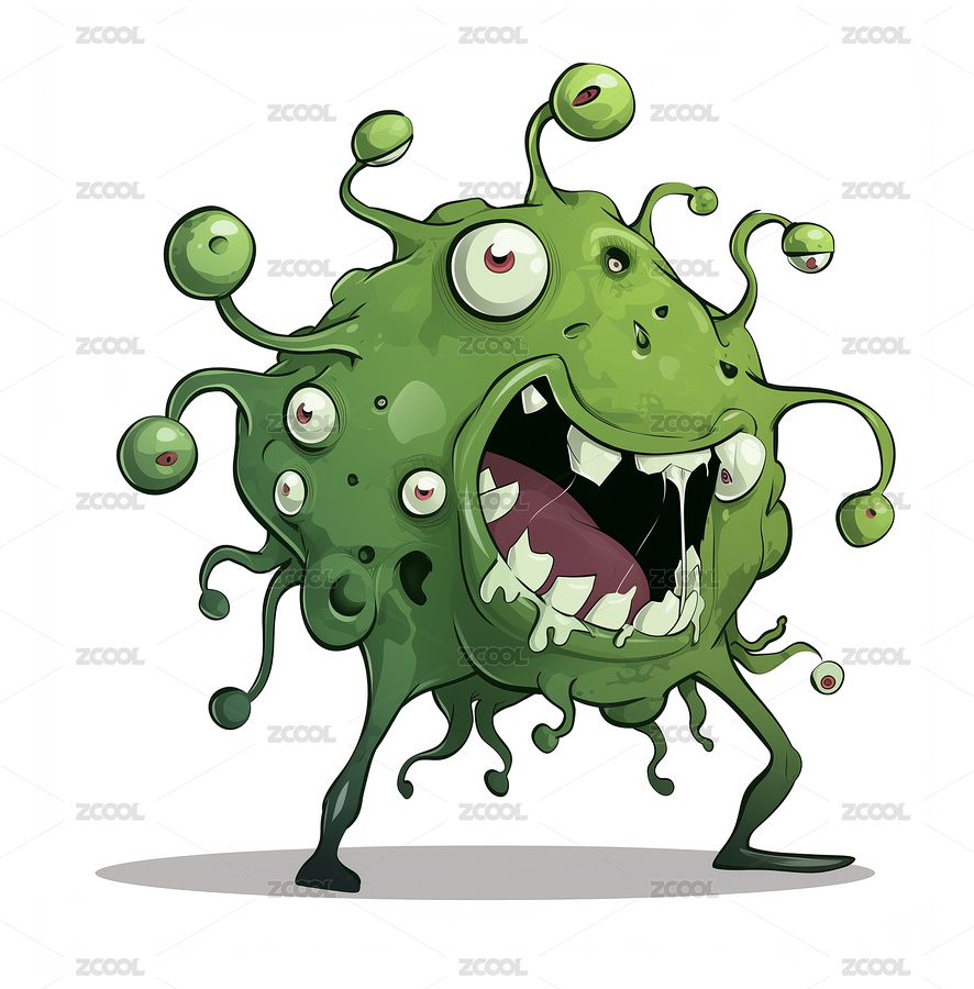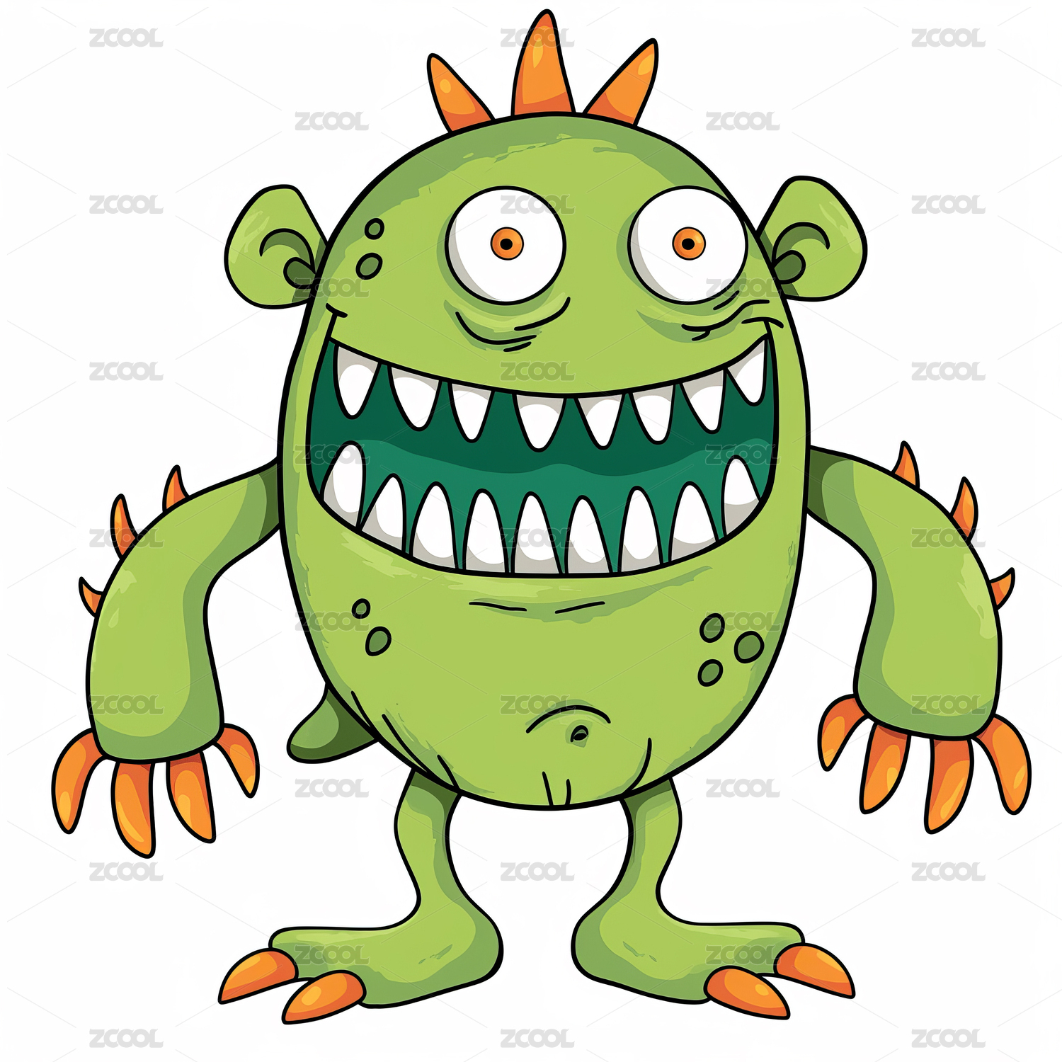 卡通,怪物,绿色,毛茸茸,友好,条纹,爪子,微笑,快乐,奇异