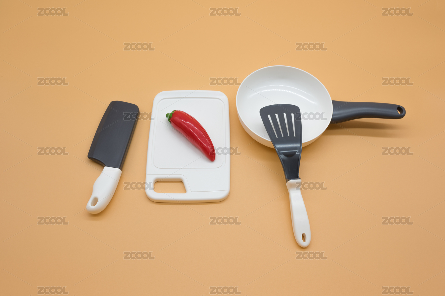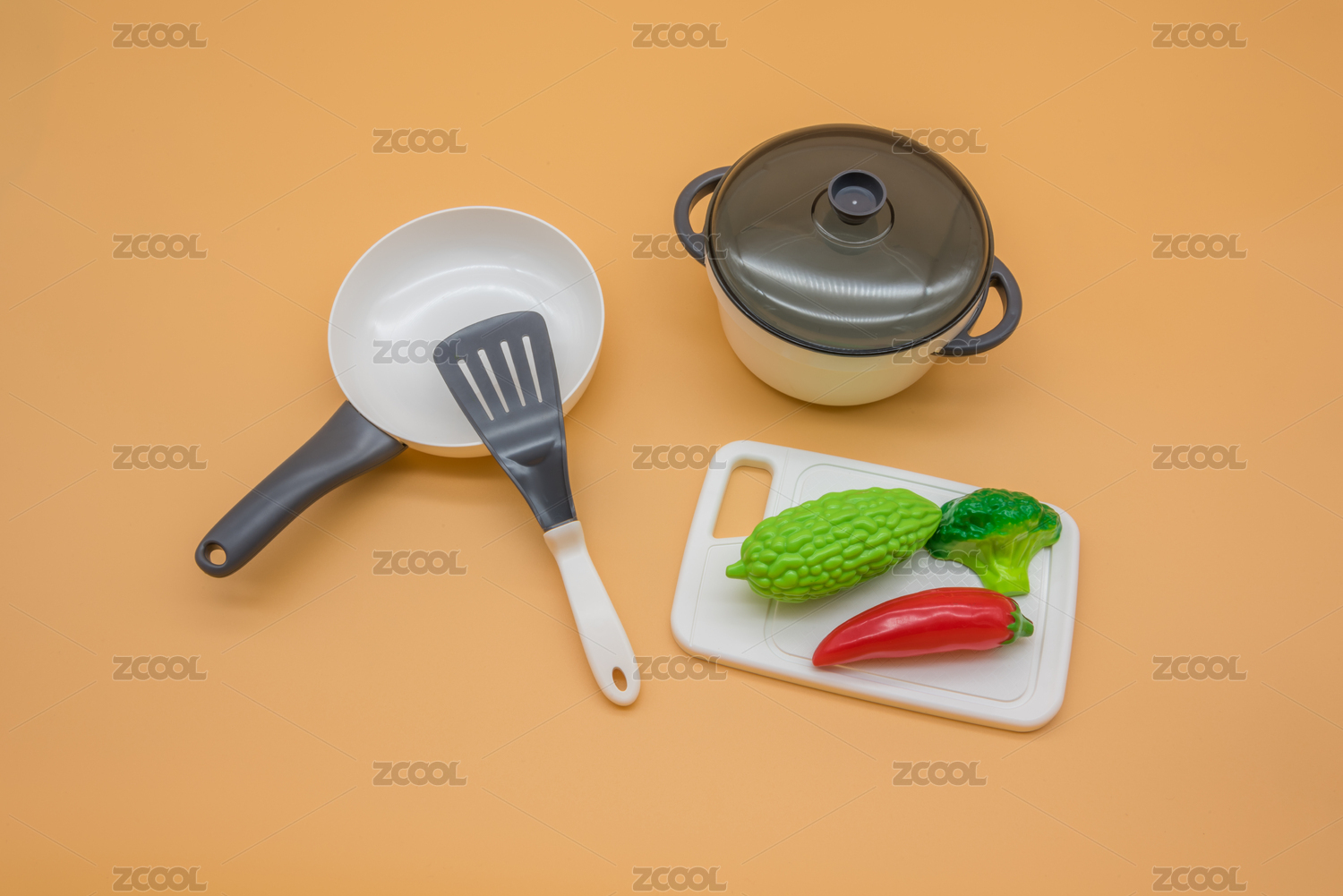 餐具,玩具,儿童,厨具,塑料,道具,橙色,背景,俯视,锅铲