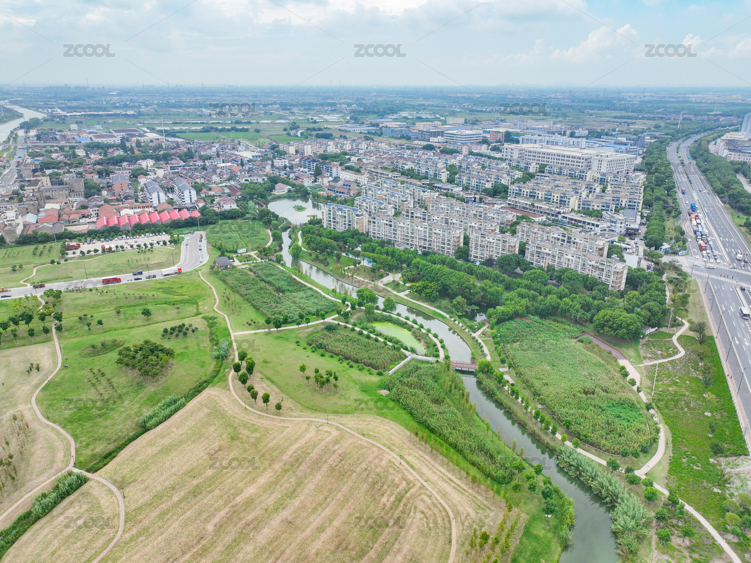 航拍,城市,天空,背景,建筑,风光,江苏,苏州,昆山,河
