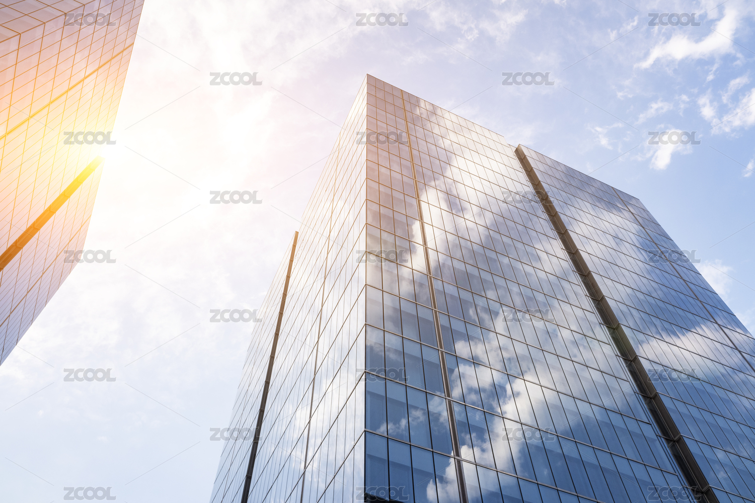 仰视钢结构建筑和现代建筑玻璃幕墙