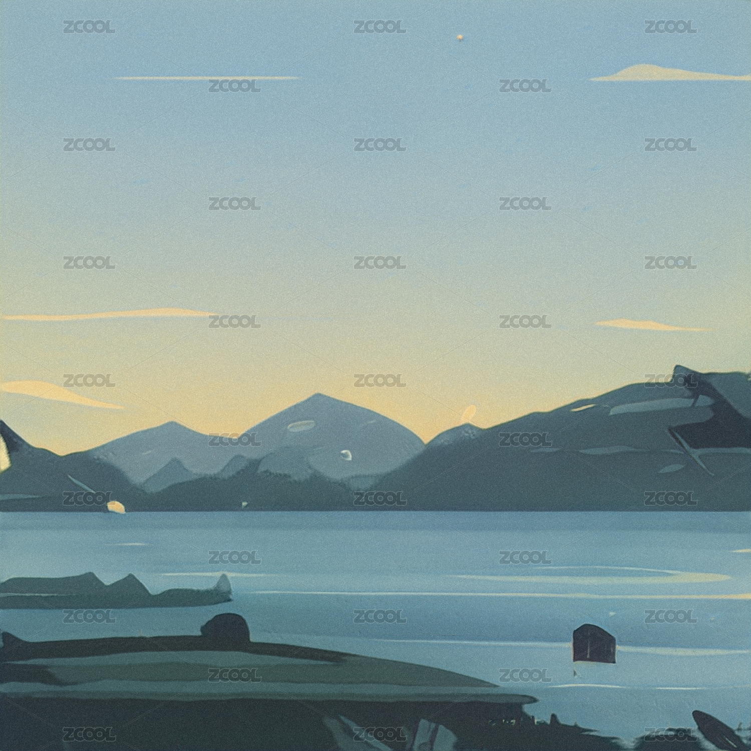 插画,风光,自然,写实,天空,山脉,河流,河,大海,海洋