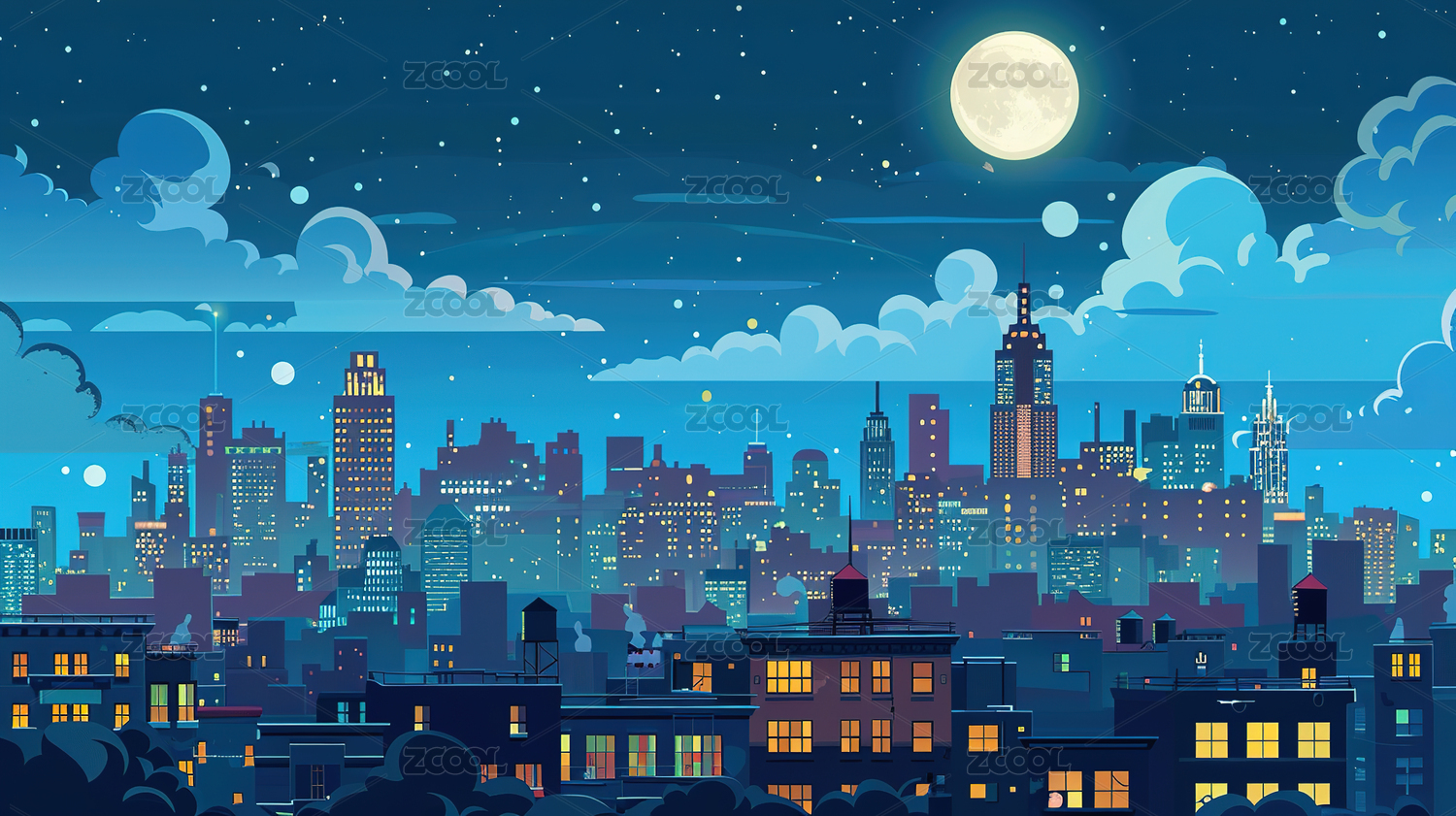 明月下的城市天际线