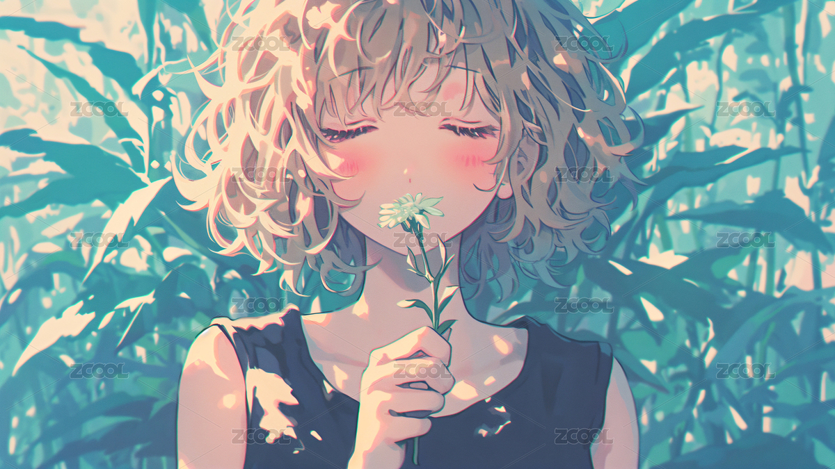 可爱,温馨,草丛,女孩,人像,少女,二次元,花朵