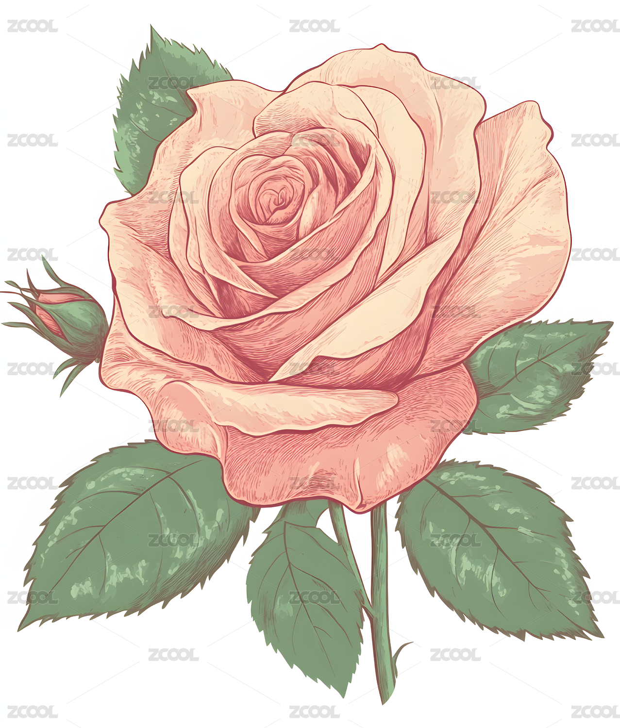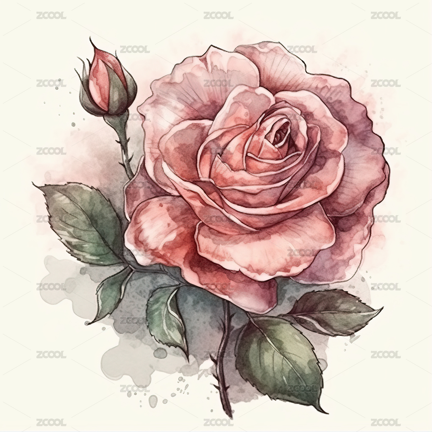 粉色玫瑰唯美浪漫手绘花卉插画背景素材