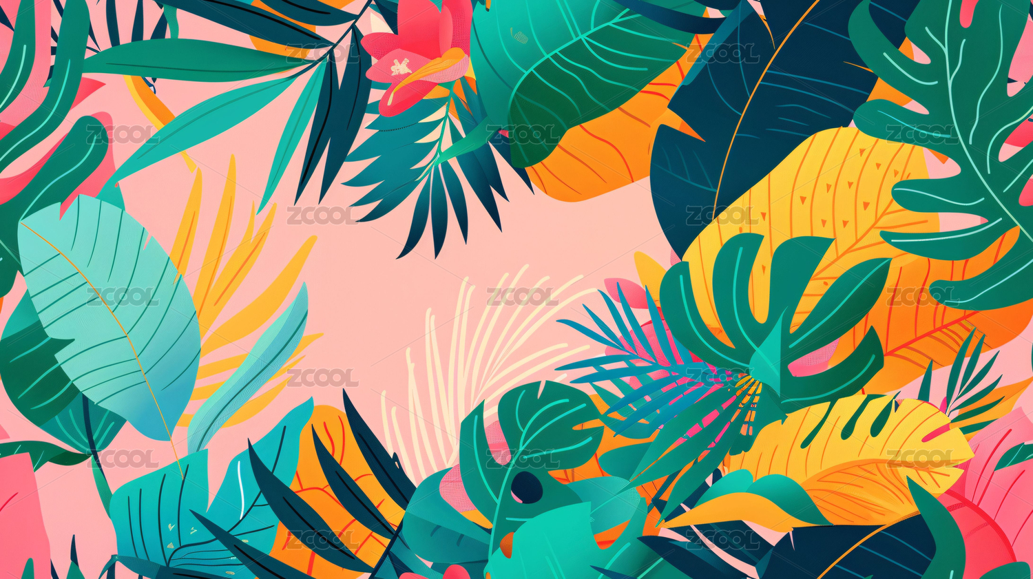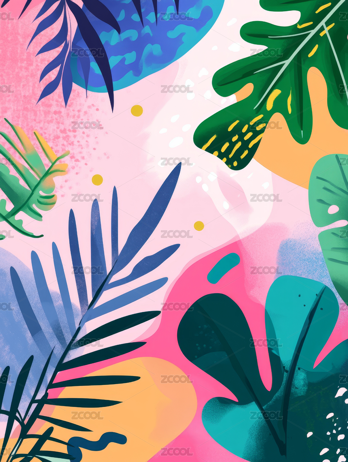 抽象,热带,植物,树叶,艺术,绘画,纹理,背景,绿色,粉色