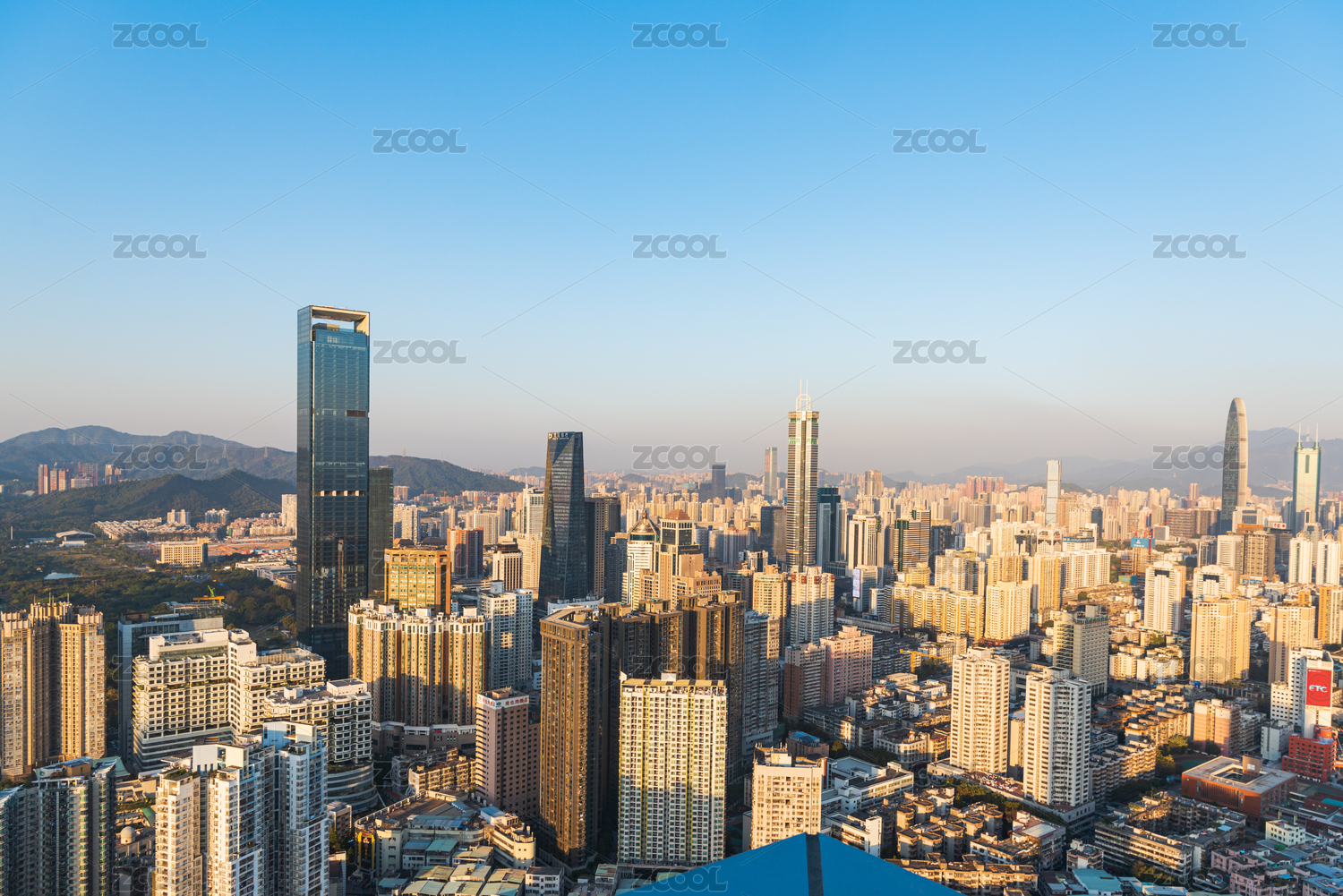 中国深圳傍晚时罗湖与南山的高楼天际线风光