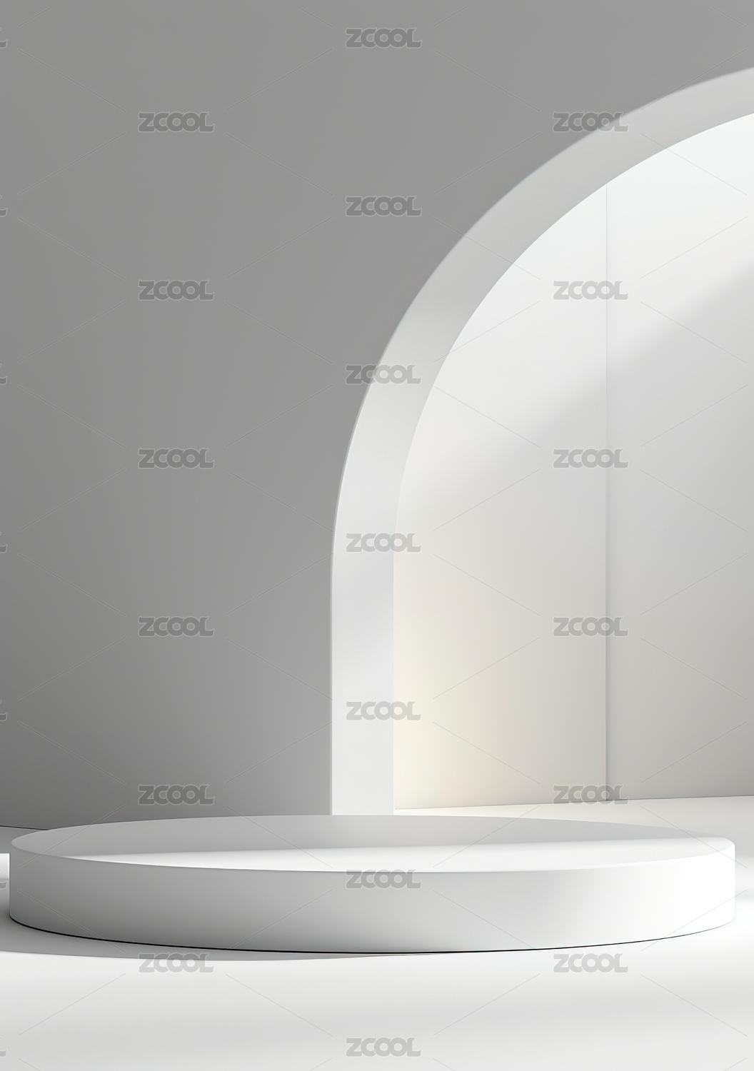 简约白色拱门与圆柱展示台