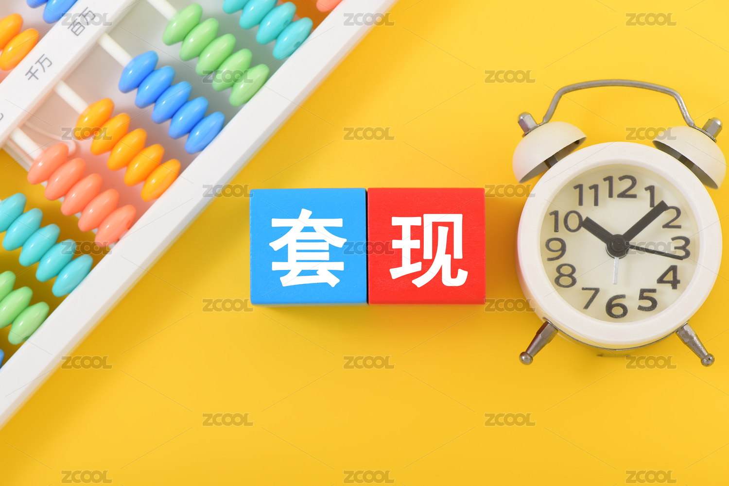 金融办公用品上放着文字积木套现