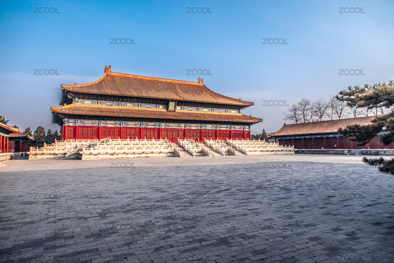 中国北京太庙大殿在晴朗的蓝天下