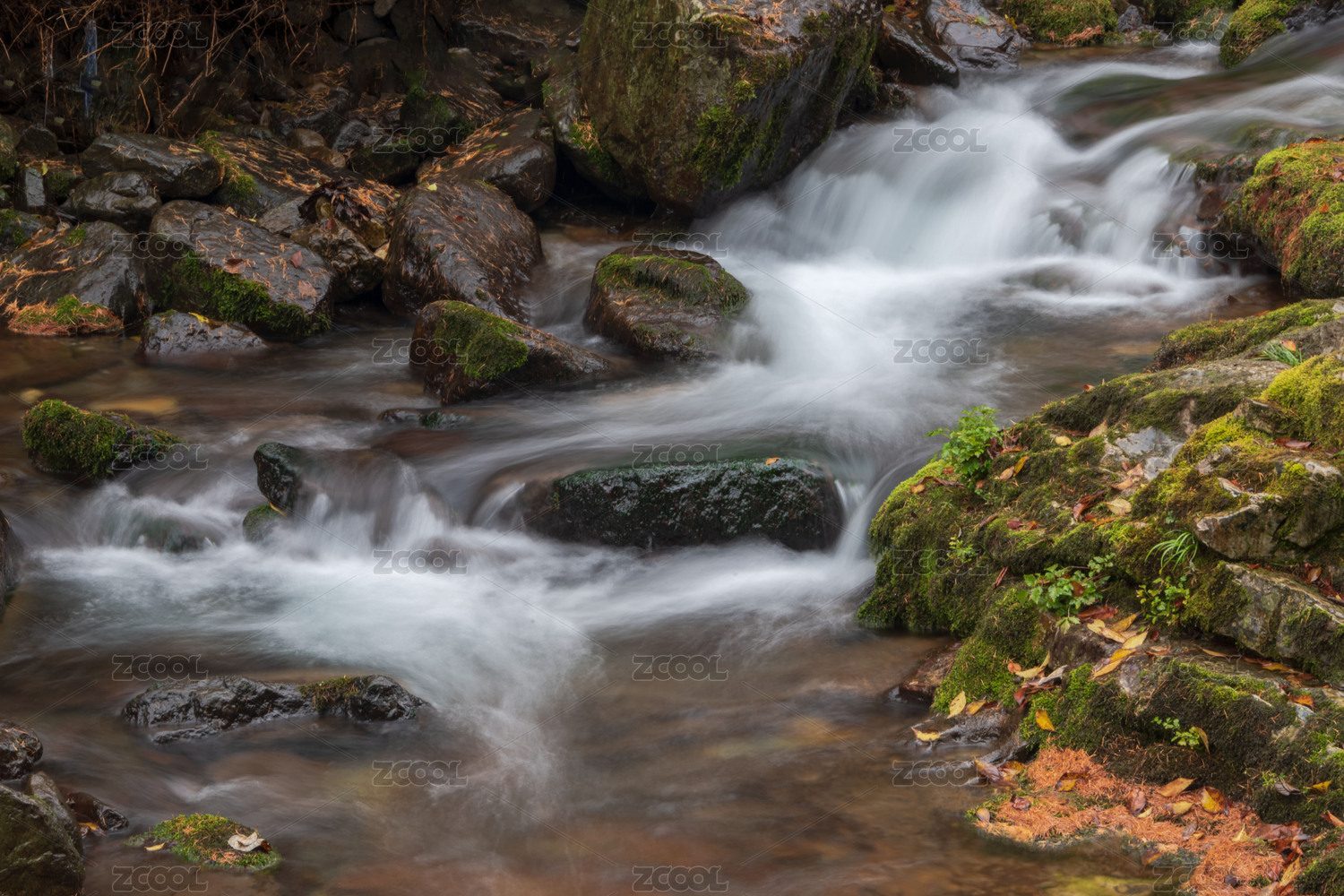 森林中山谷溪流的慢门流水
