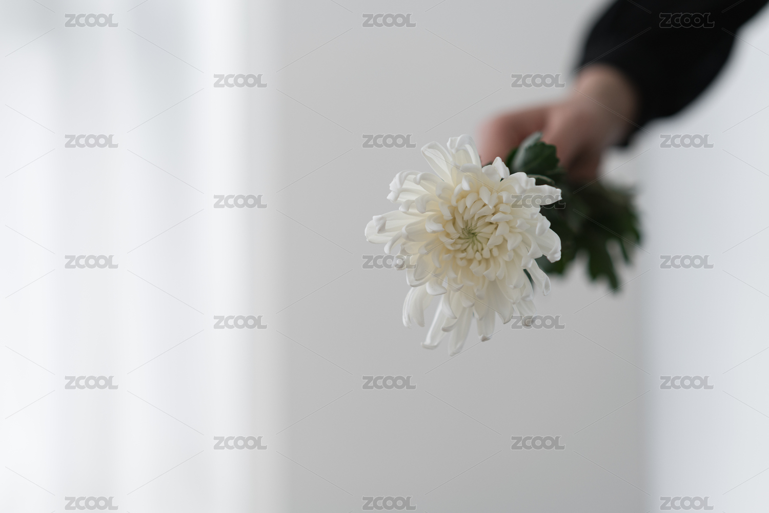 手拿一支白色菊花