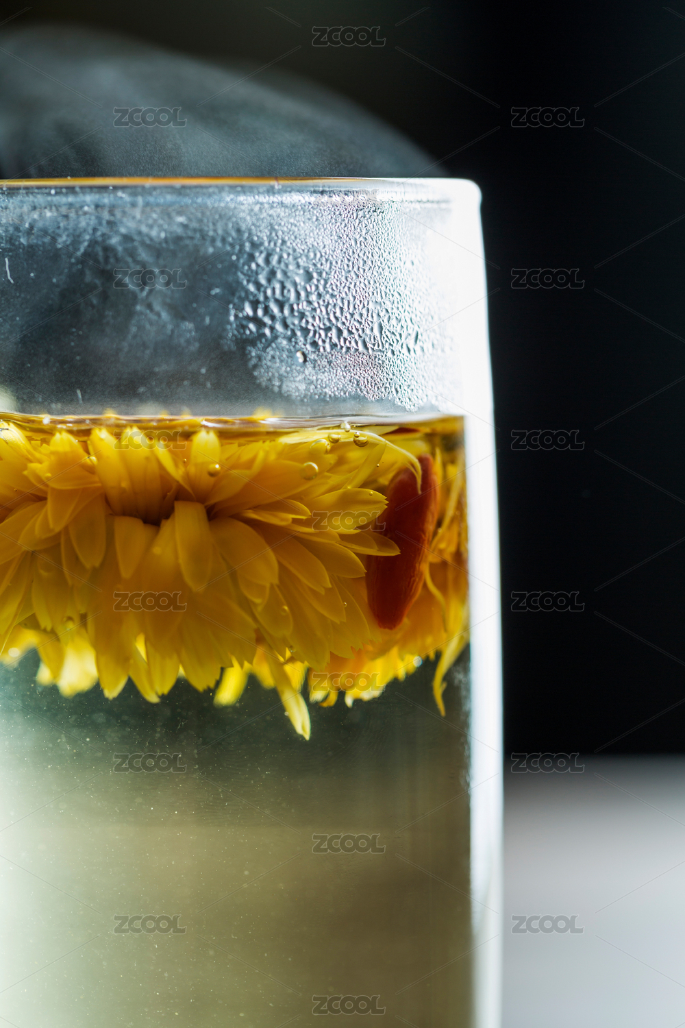 菊花茶特写深色背景