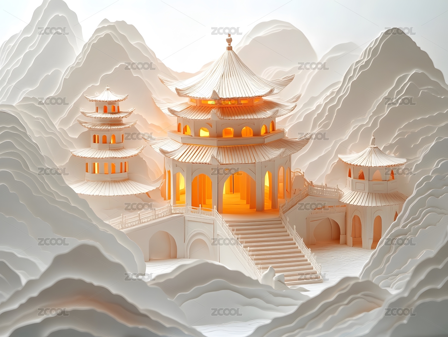 建筑,纸雕,阁楼,艺术,白色,黄色