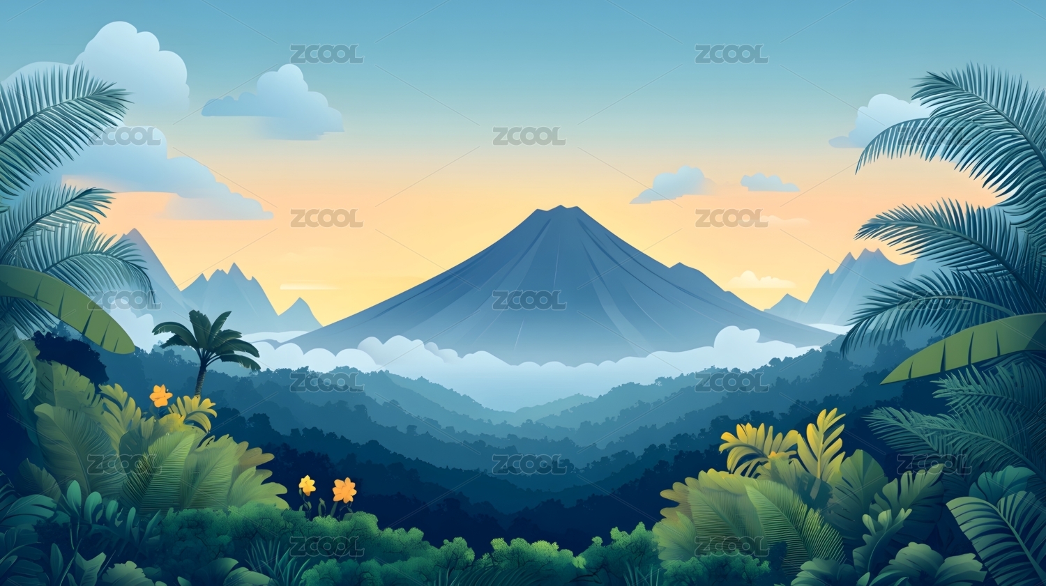 无人,插画,户外,自然,AI数字艺术,高山,森林,地形,月亮,风景