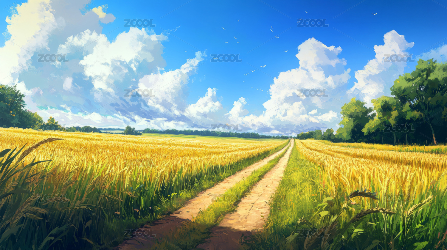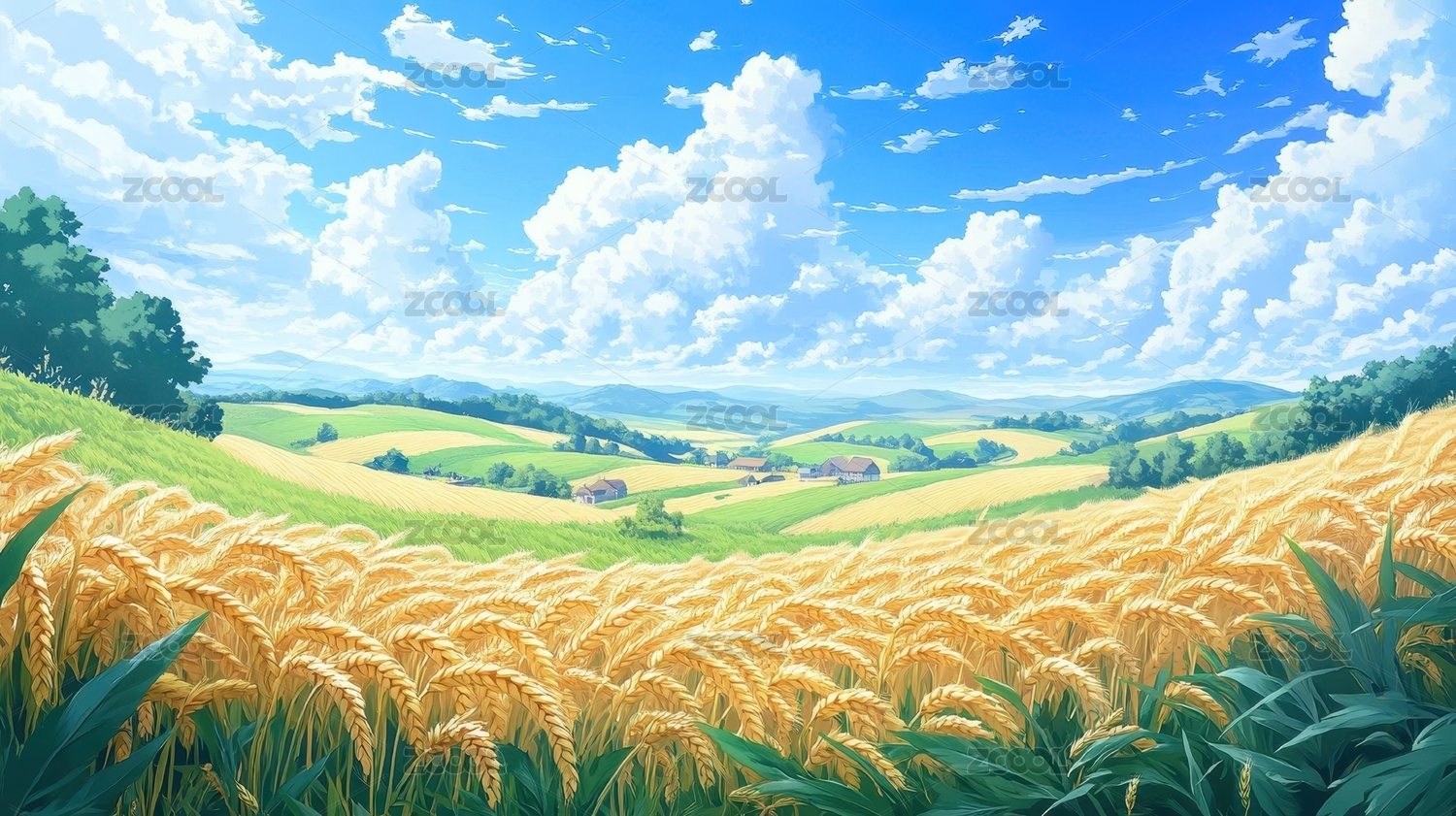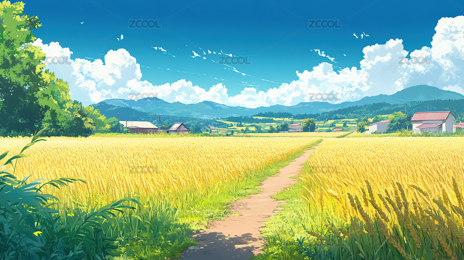 夏天金色麦田秋天节气小麦成熟秋收插画