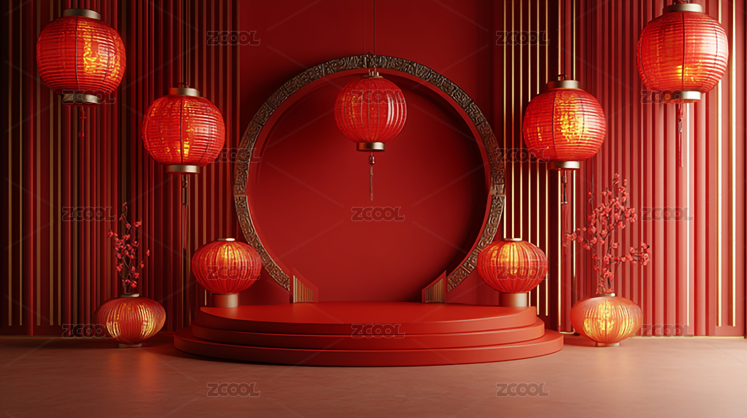 3D渲染红色中国风节日喜庆产品展台背景