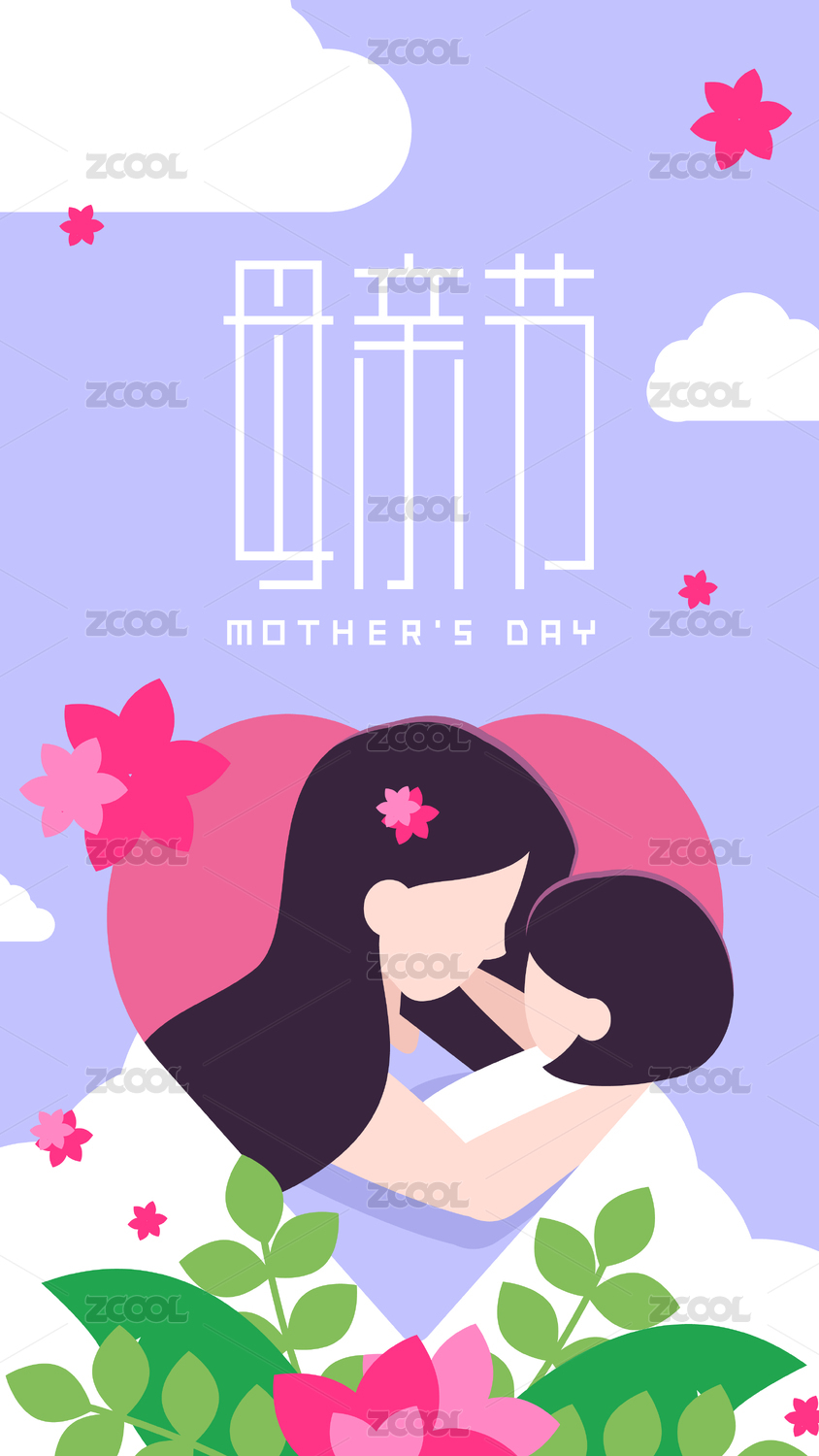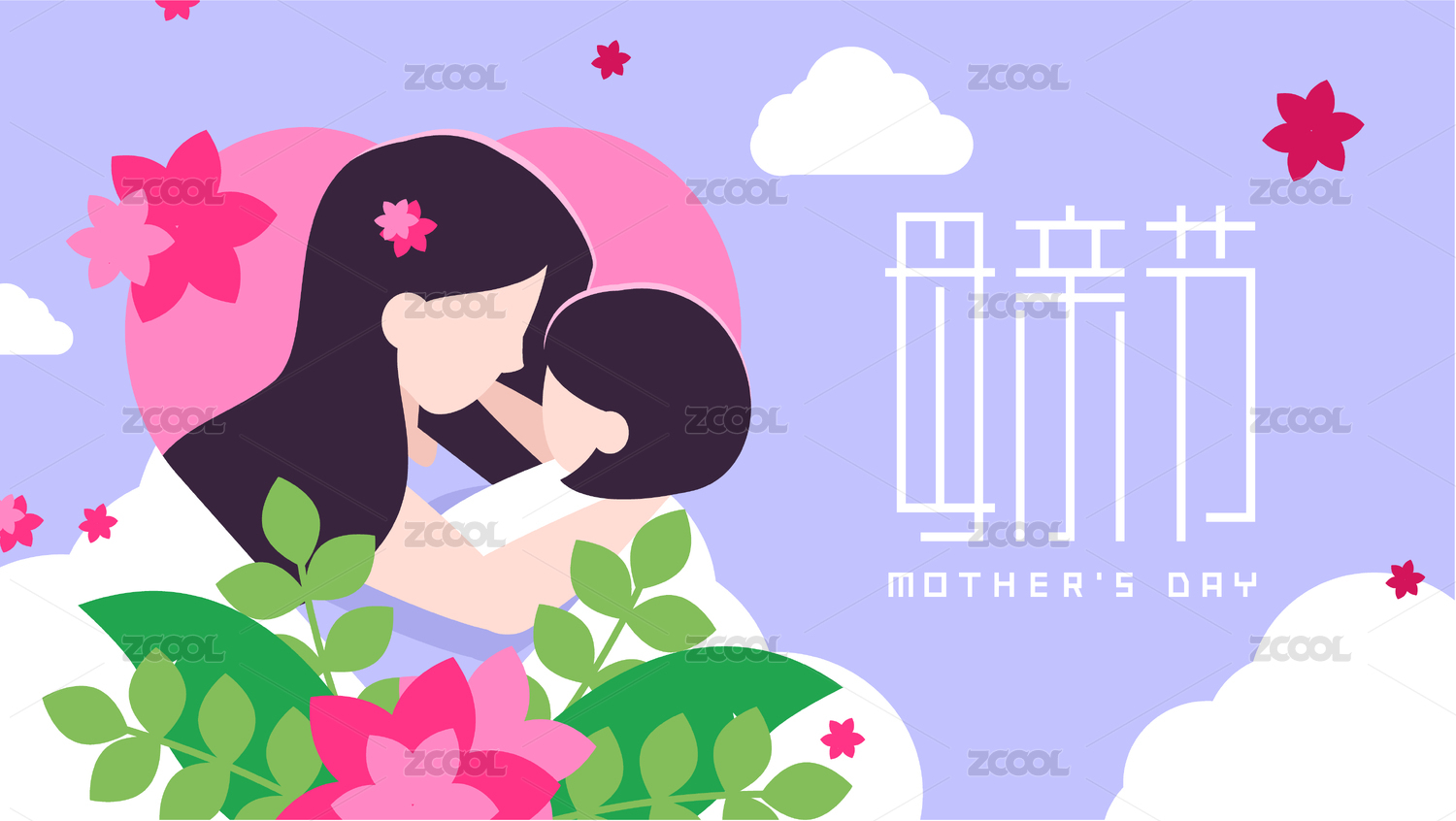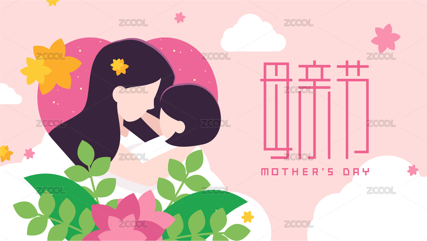 妈妈抱着出生的孩子在花朵上的母亲节插画