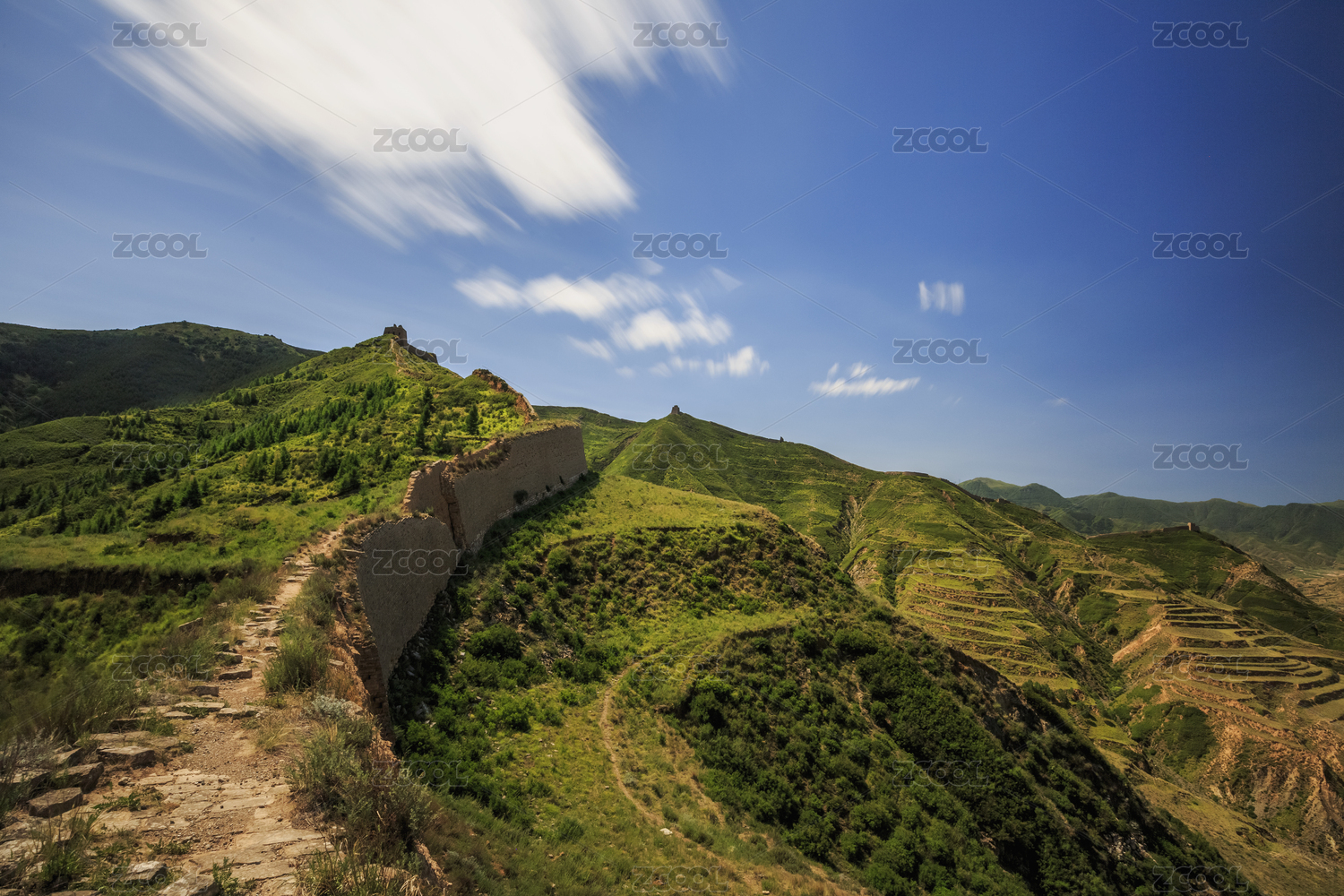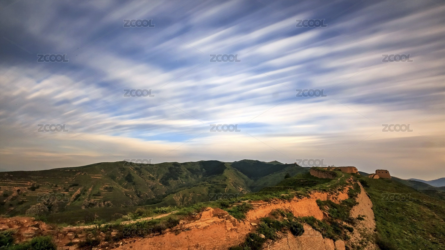 广武城,落日,新广武长城,山阴县,彩云,中国,山西,明长城,晚霞,蓝天