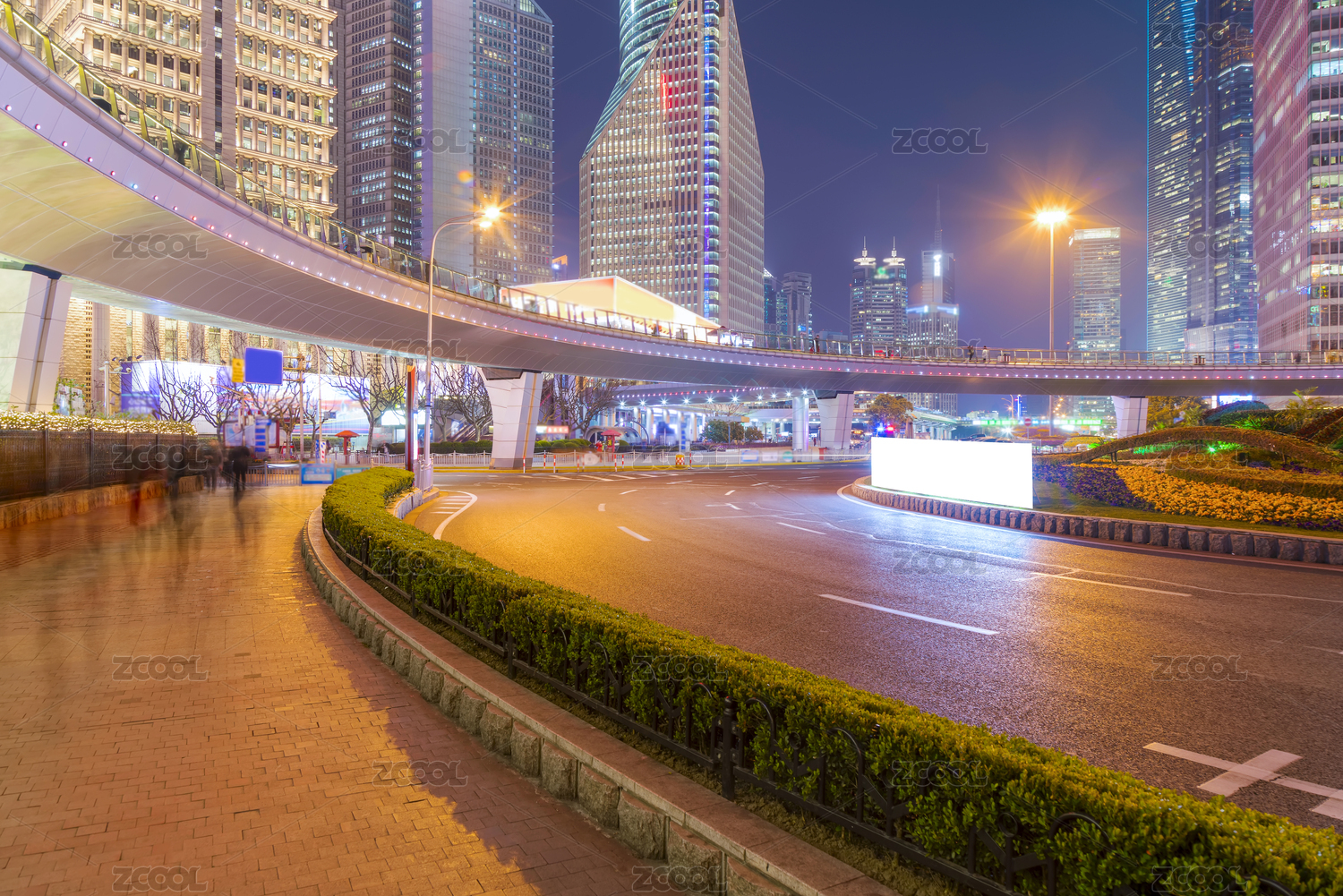 上海城市景观飞驰的汽车尾灯形成的光的轨迹