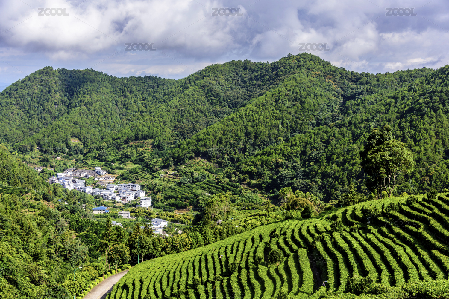 宜宾珙县鹿鸣茶场蜿蜒茶山蓝天白云