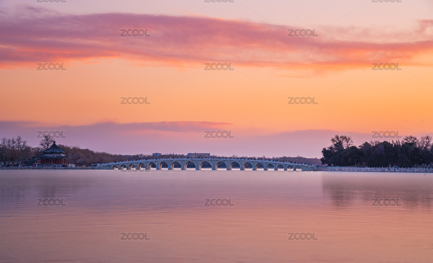北京市颐和园十七孔桥建筑景观