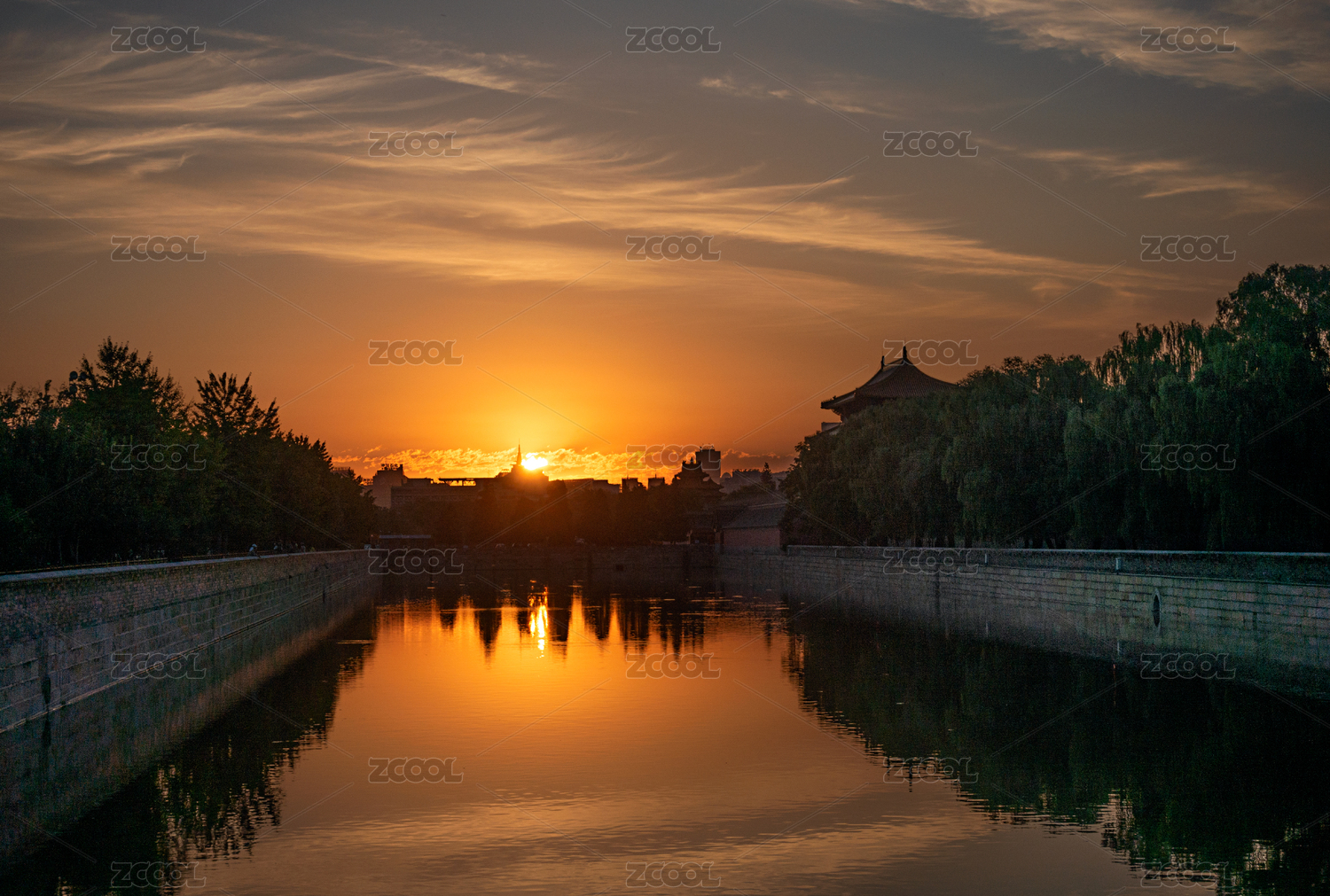 中国北京故宫筒子河迎日出