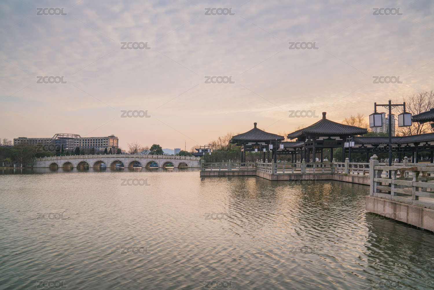 中国开封龙亭景区晚霞倒影
