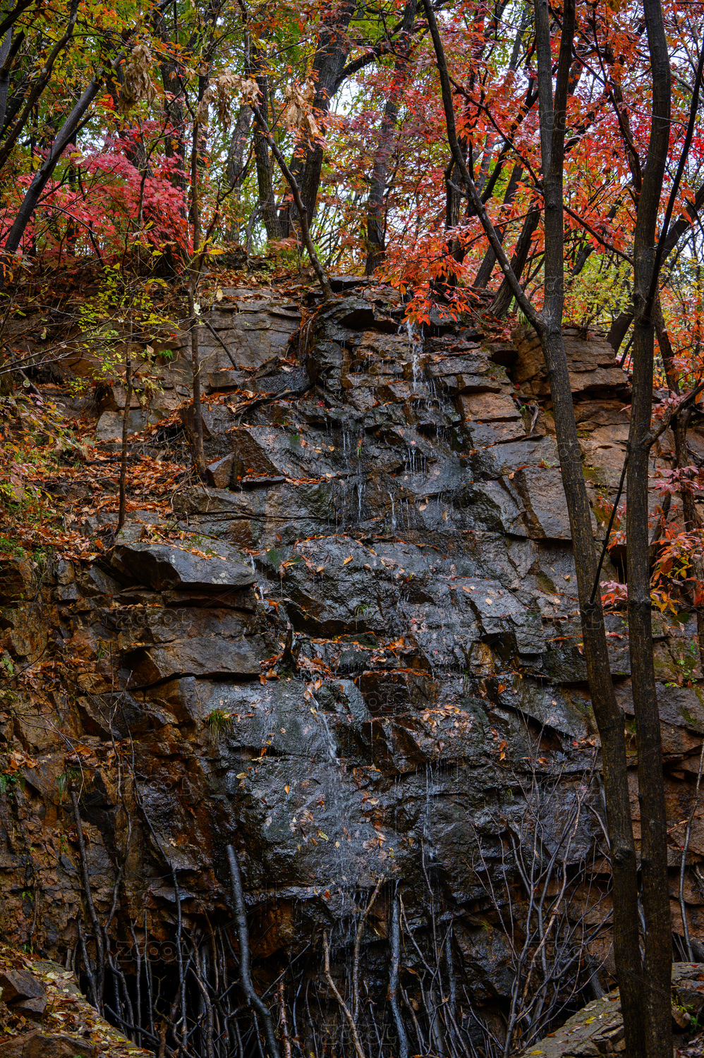 沈阳本溪老边沟 秋天枫树红叶瀑布自然风光