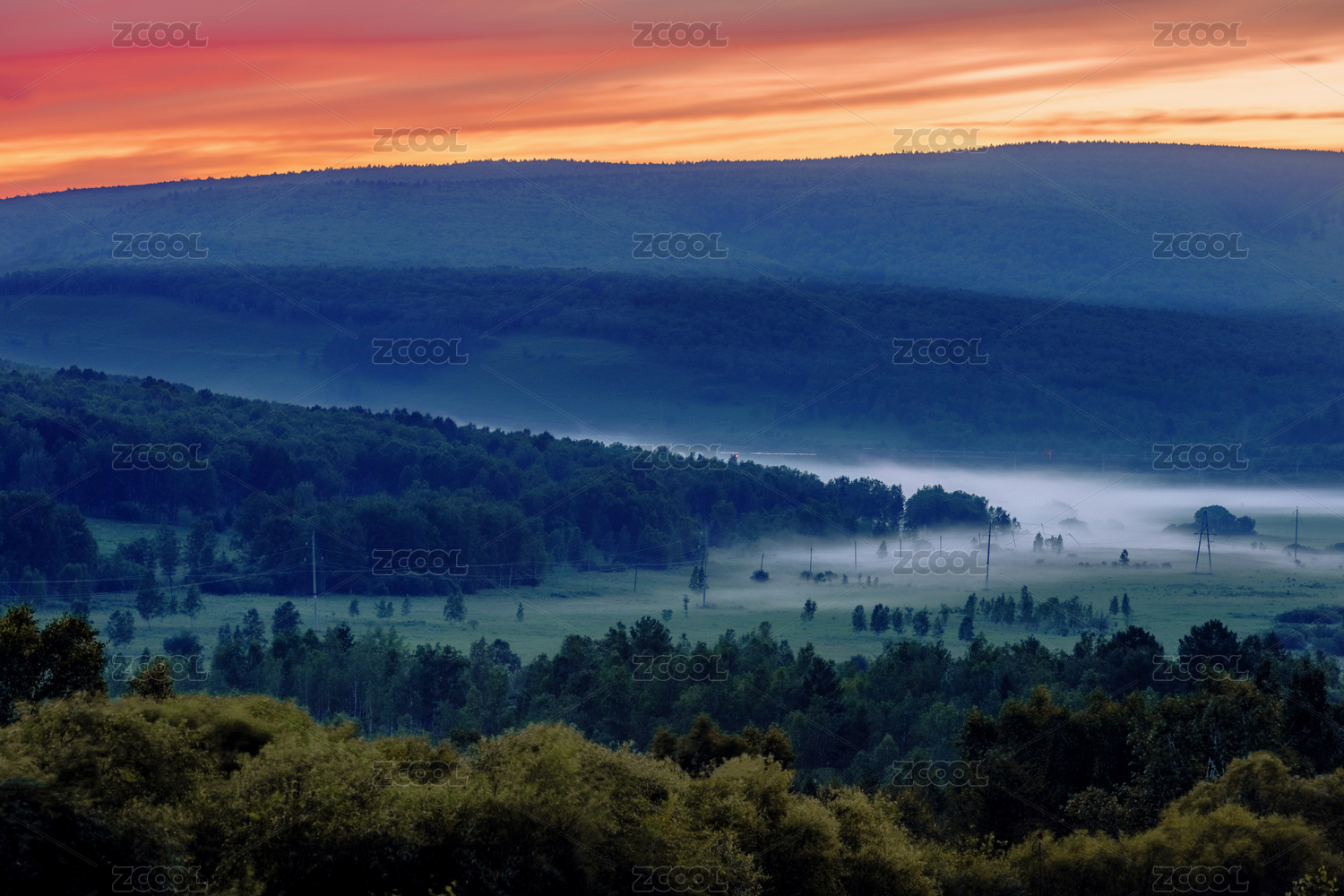 中国大兴安岭原始森林日出时分的雾海云天