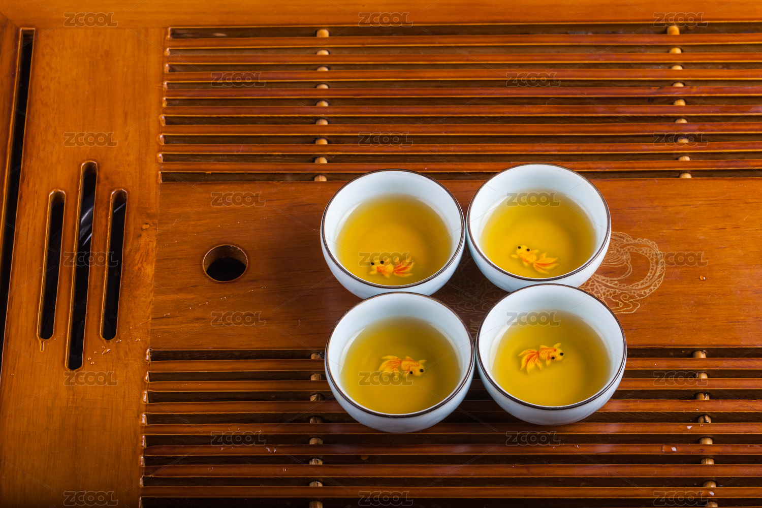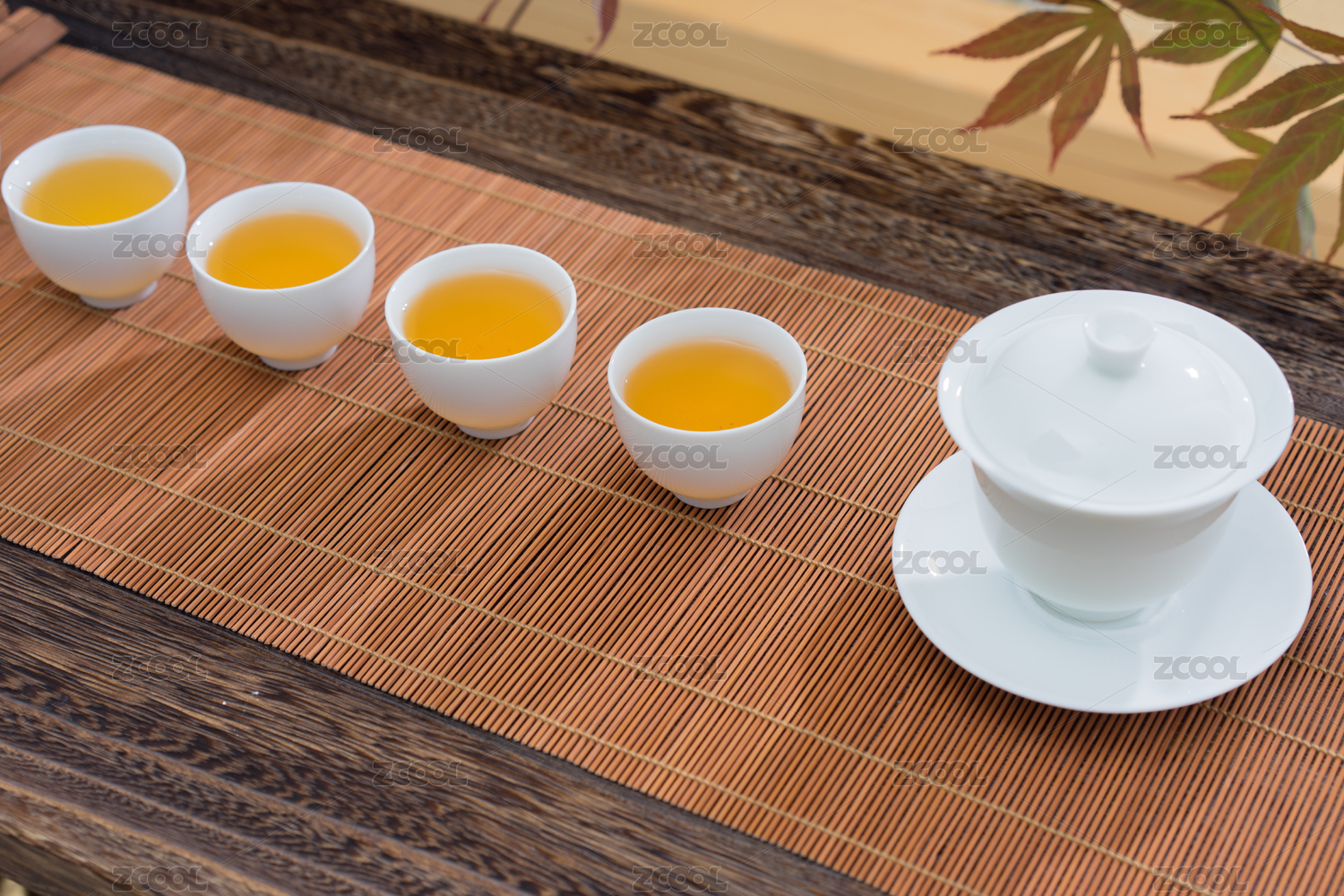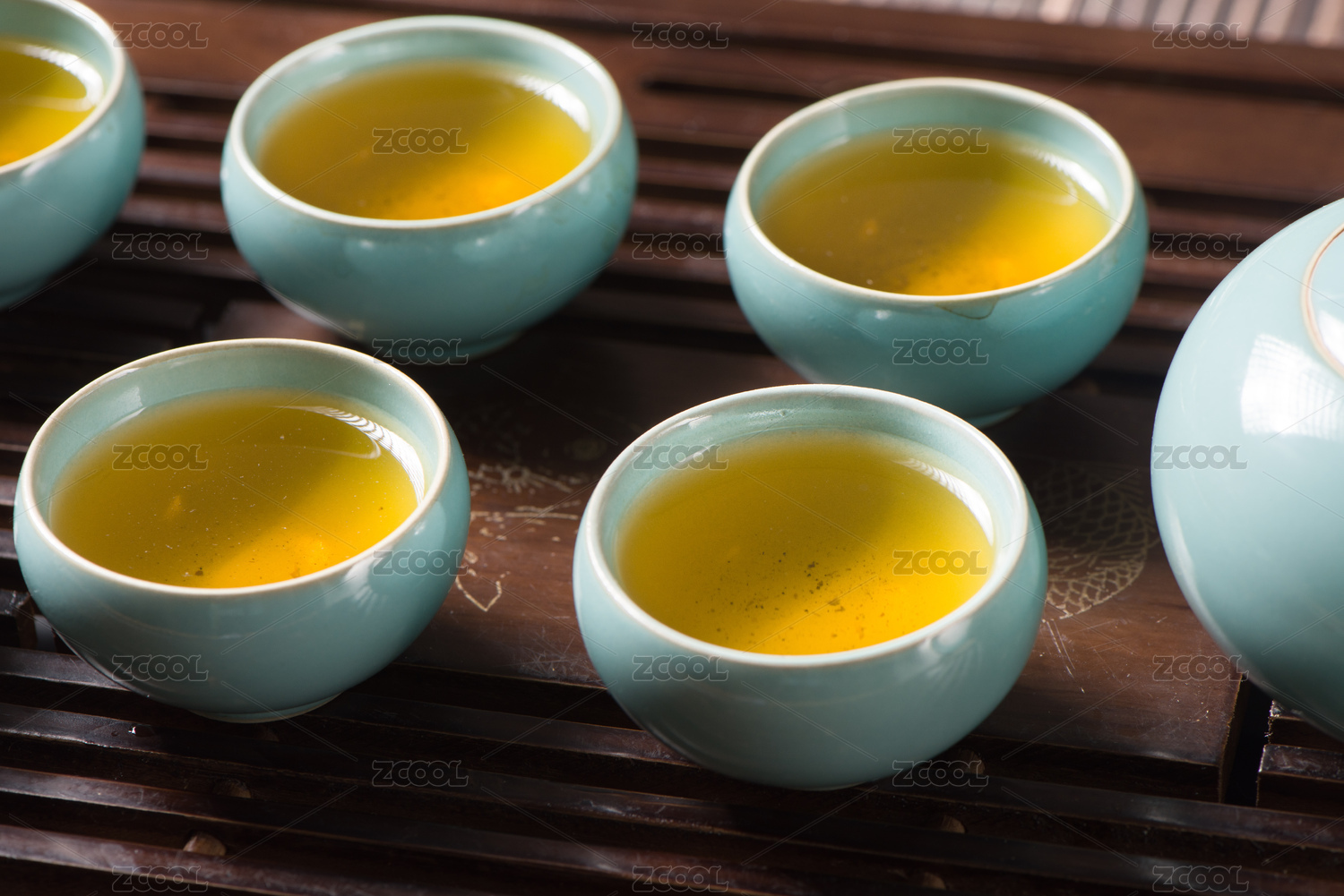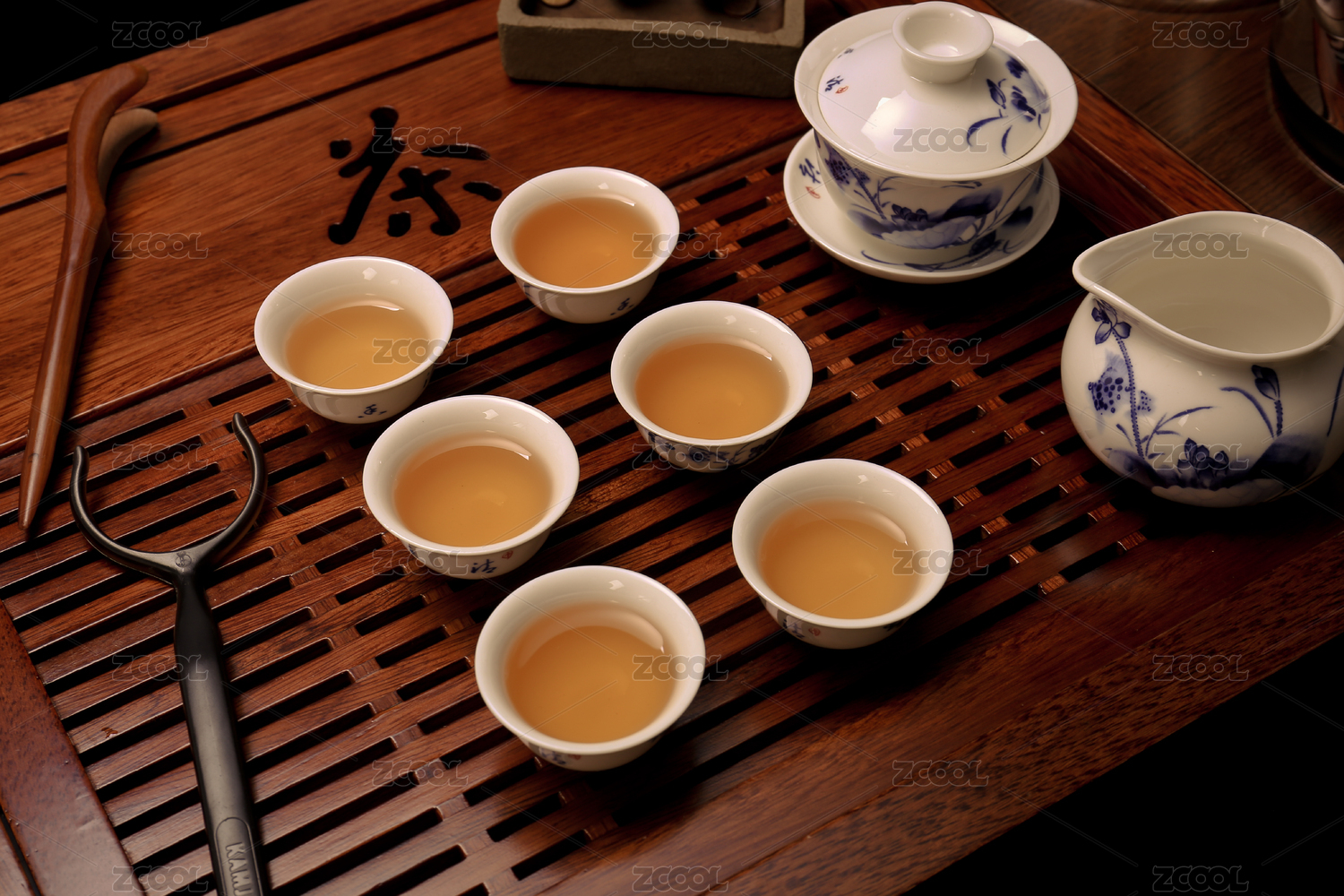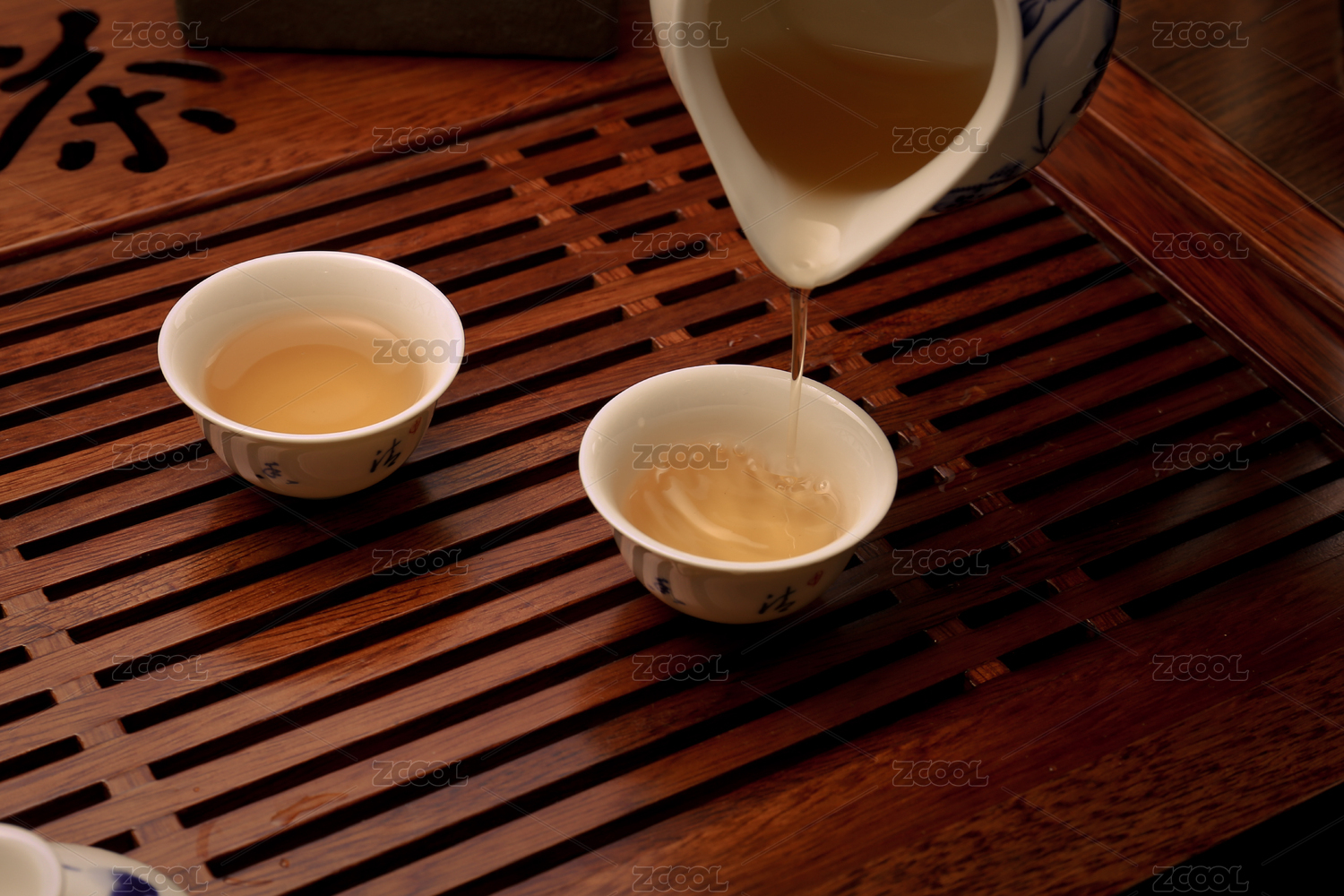 茶盘上往盖碗里倒茶水