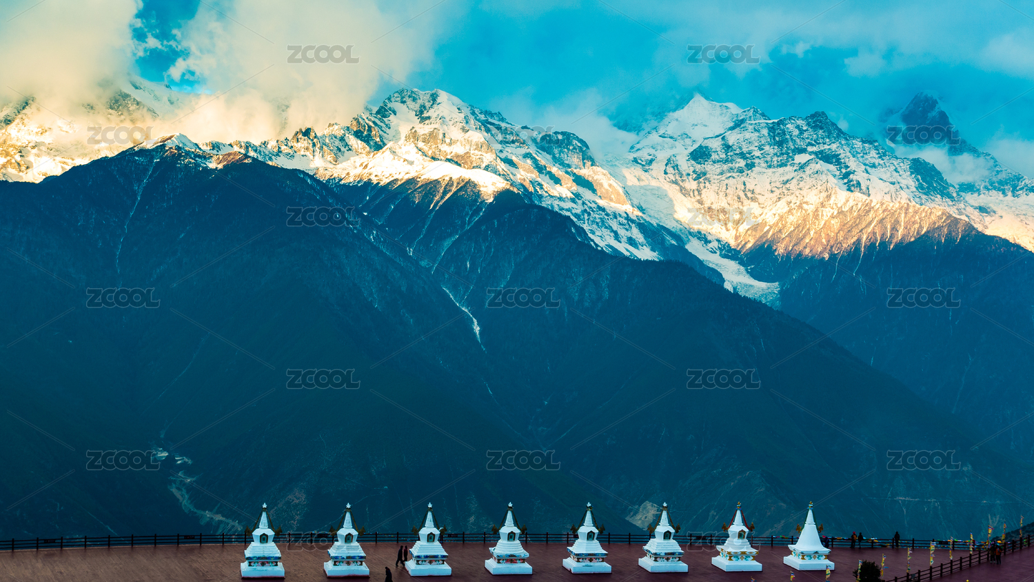 中国云南德钦梅里雪山缅茨姆峰下的白塔