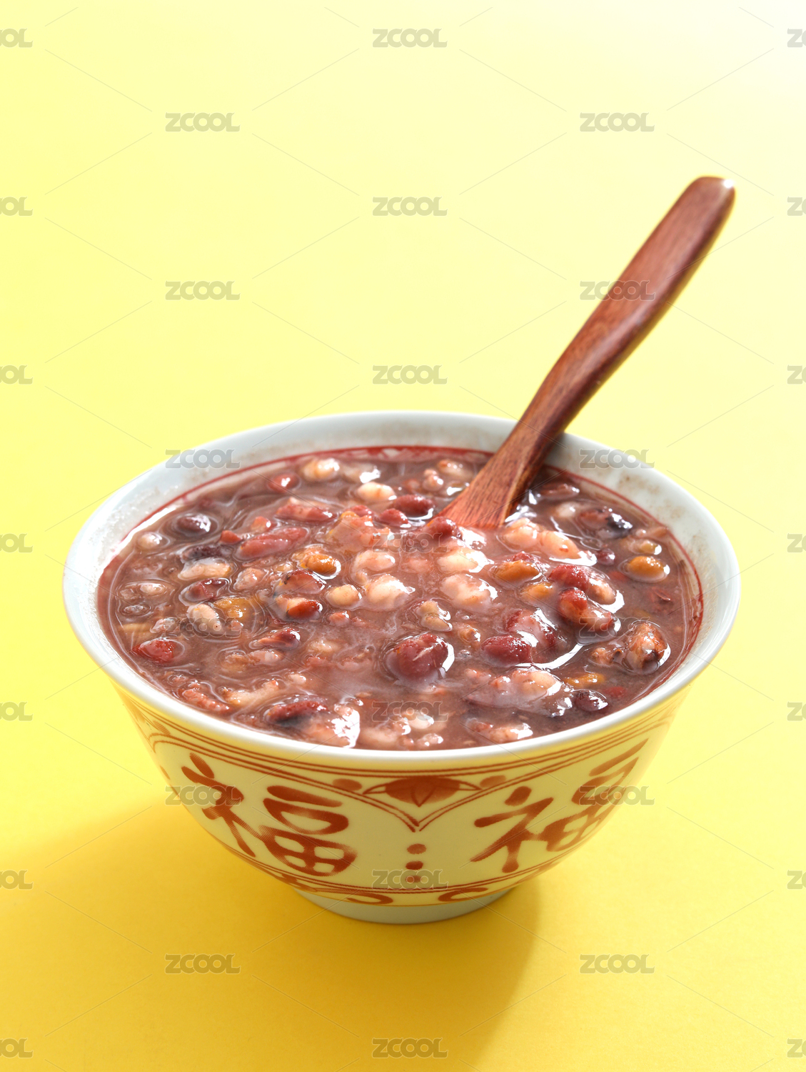 黄色背景上的一碗传统春节美食腊八粥