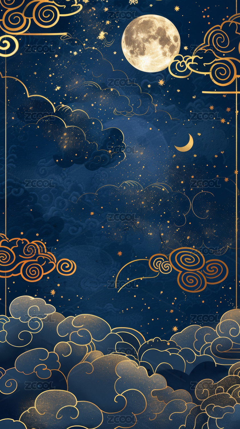 AIGC202403,传统,文化,中秋节,节日,插画,插图,月亮,月,圆月